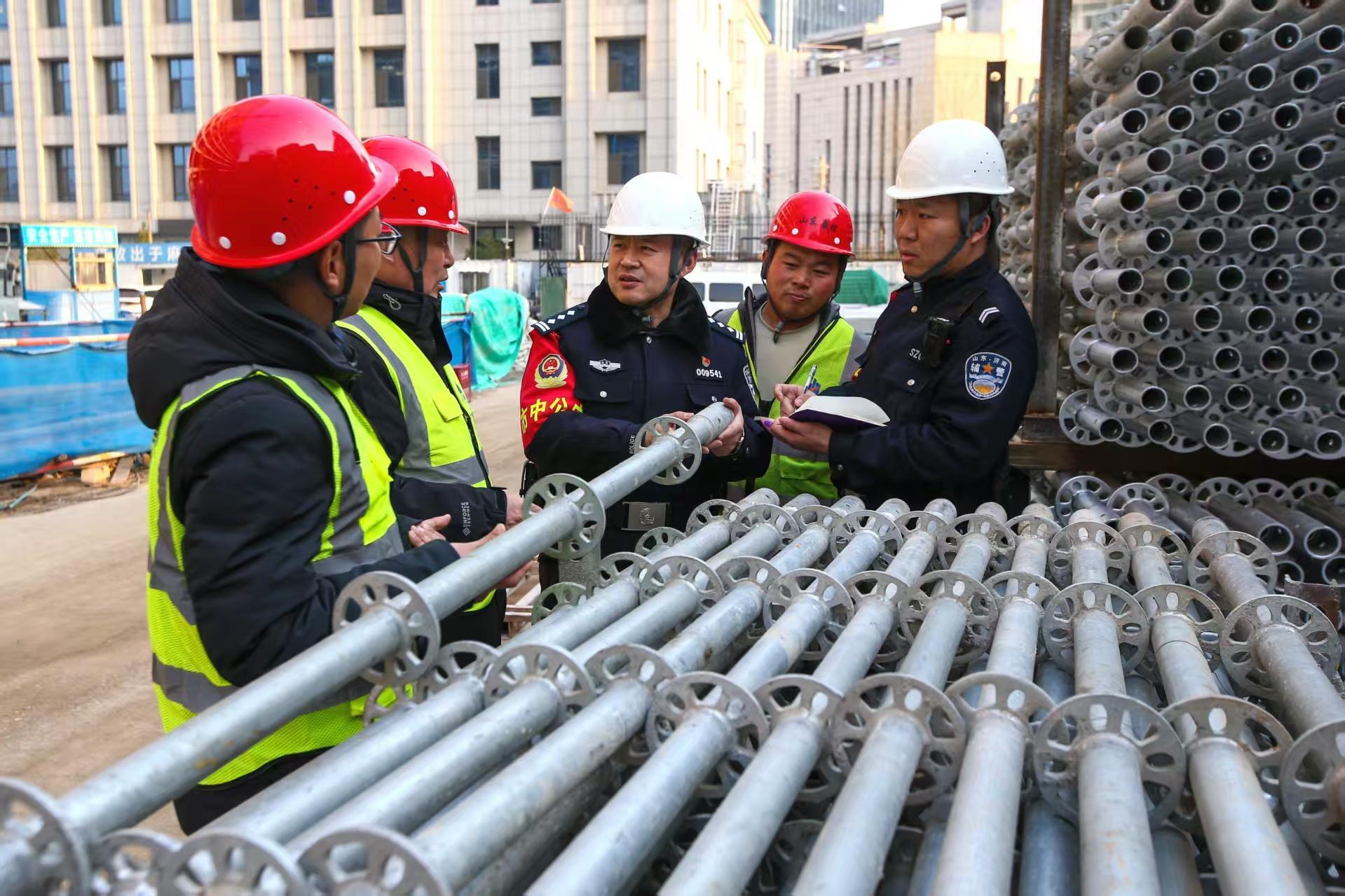 2月18日,山東省濟(jì)南市公安局市中區(qū)分局六里山派出所組織社區(qū)民輔警走進(jìn)轄區(qū)建筑工地,通過開設(shè)“法治課堂”,向工人宣傳反電詐反邪教和安全生產(chǎn)常識,護(hù)航企業(yè)復(fù)工復(fù)產(chǎn),提高工人的安全防范意識。圖為民輔警向工人了解安全生產(chǎn)情況。