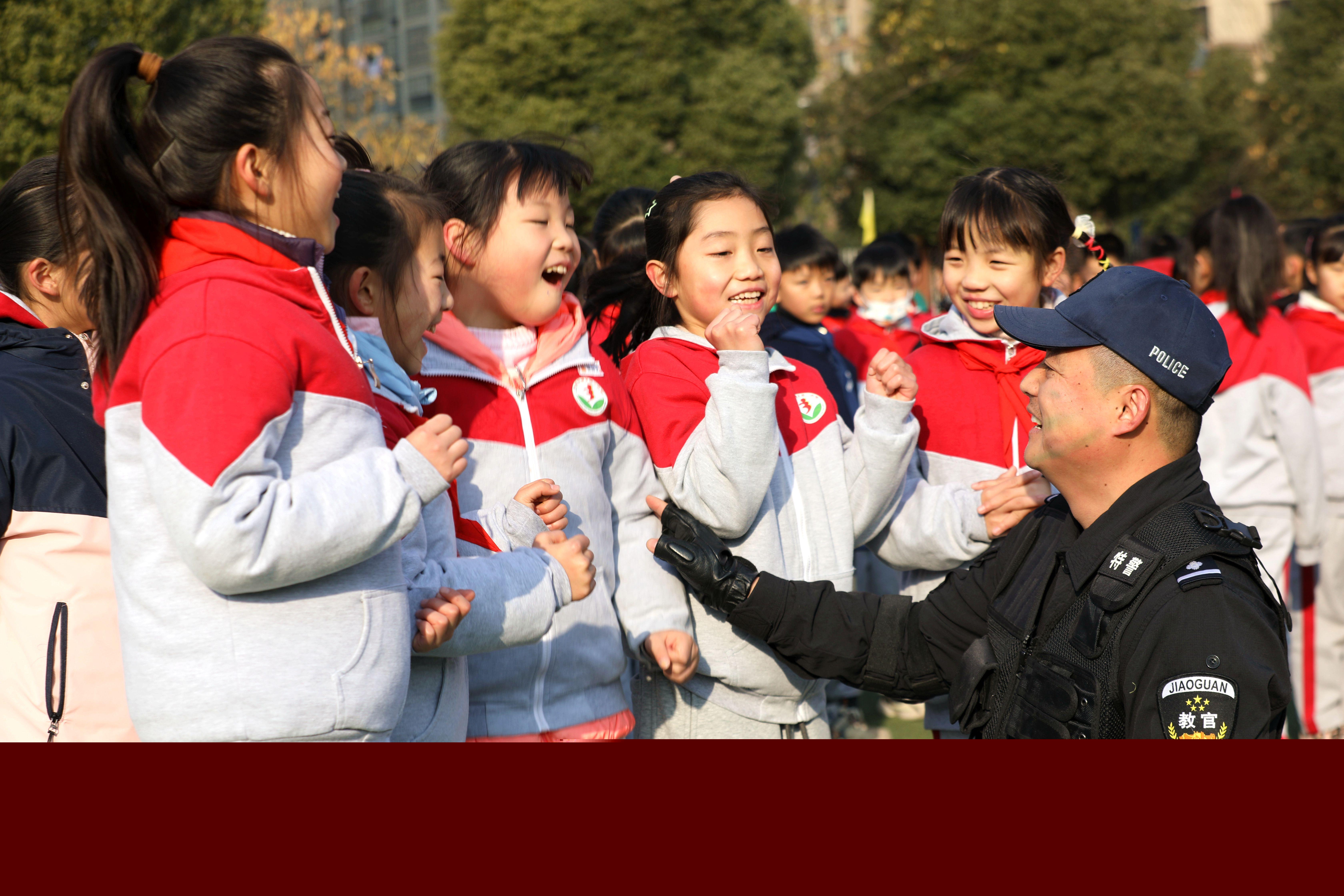2024年12月31日,安徽省舒城縣公安局指揮中心組織特警、交警、派出所民警等警種走進(jìn)轄區(qū)城關(guān)三小,開展“我和警旗合個影”活動,現(xiàn)場表演了特警技戰(zhàn)術(shù)、交警騎行、警犬進(jìn)攻等精彩節(jié)目。圖為特警與同學(xué)們互動。