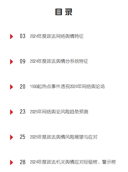 3月20日,法治網(wǎng)發(fā)布最新研究成果《2024年度政法輿情分析報(bào)告》(以下簡(jiǎn)稱《報(bào)告》),全面回顧、梳理并分析了2024年度政法輿情的典型特征,并對(duì)2025年度的網(wǎng)絡(luò)輿論態(tài)勢(shì)和政法輿情風(fēng)險(xiǎn)作出研判。