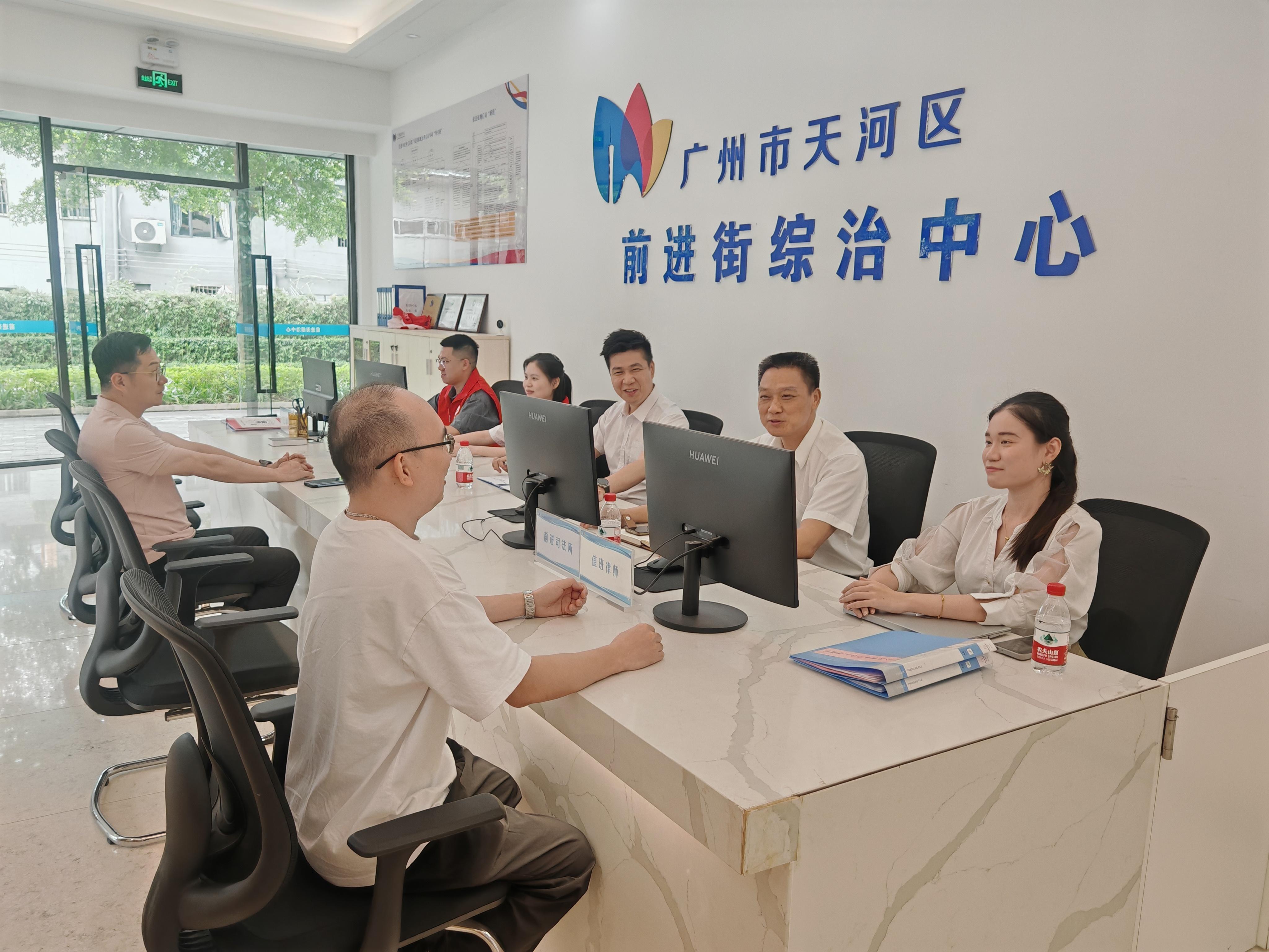 穿過(guò)廣州金融城東區(qū)的繁華樓宇,前進(jìn)街道綜治中心的藍(lán)白色標(biāo)識(shí)格外醒目。這座550平方米的綜合服務(wù)體,打破傳統(tǒng)基層治理的“碎片化”困局:法官工作室、檢察官工作室與黨群服務(wù)、政務(wù)辦理等12個(gè)功能區(qū)融為一體,形成“進(jìn)一扇門、辦百家事”的“一站式”服務(wù)矩陣,被居民親切地稱為“會(huì)客廳”。