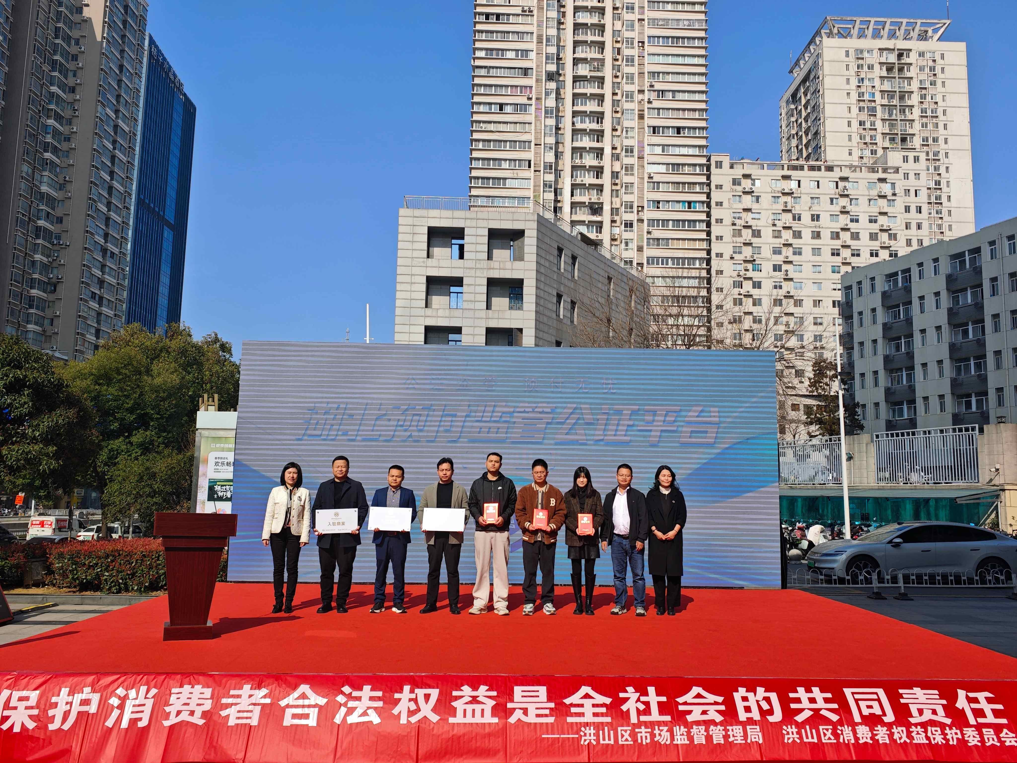 圖為首批入駐洪山區(qū)預(yù)付式消費(fèi)監(jiān)管平臺(tái)的教育培訓(xùn)企業(yè)頒發(fā)入駐公示牌。容俊/攝