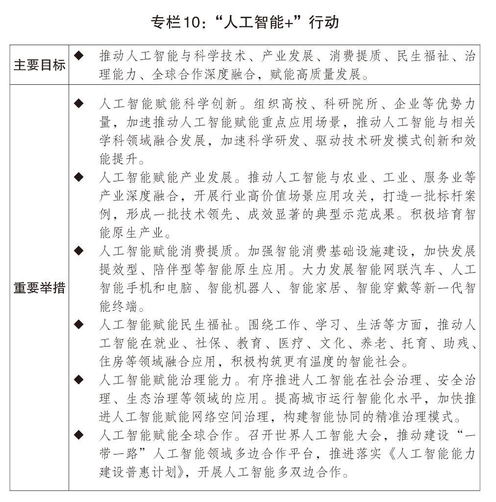 四是深入推進(jìn)數(shù)字中國建設(shè)。深入實(shí)施“人工智能+”行動,高質(zhì)量建設(shè)國家人工智能應(yīng)用中試基地,推動人工智能在重點(diǎn)行業(yè)領(lǐng)域商業(yè)化規(guī)模化應(yīng)用。支持人工智能開源社區(qū)建設(shè),促進(jìn)模型、工具、數(shù)據(jù)集等匯聚開放。發(fā)展新一代智能終端以及模型即服務(wù)、智能體即服務(wù)等新產(chǎn)品新業(yè)態(tài)。加快建設(shè)全國一體化算力網(wǎng),優(yōu)化國家算力資源布局,支持公共云發(fā)展。推動完善人工智能領(lǐng)域法律法規(guī)。加快構(gòu)建人工智能安全風(fēng)險防治體系。健全數(shù)據(jù)要素基礎(chǔ)制度,出臺建設(shè)全國一體化數(shù)據(jù)市場的政策,積極推進(jìn)數(shù)據(jù)流通利用基礎(chǔ)設(shè)施建設(shè)和運(yùn)營,深入推進(jìn)數(shù)據(jù)要素綜合試驗(yàn)區(qū)建設(shè)。加快公共數(shù)據(jù)資源開放共享和開發(fā)利用,深入推進(jìn)可信數(shù)據(jù)空間創(chuàng)新發(fā)展試點(diǎn)、數(shù)據(jù)產(chǎn)業(yè)集聚區(qū)建設(shè)試點(diǎn)。構(gòu)建數(shù)字產(chǎn)業(yè)集群梯次布局體系,高質(zhì)量推進(jìn)數(shù)字經(jīng)濟(jì)創(chuàng)新發(fā)展試驗(yàn)區(qū)建設(shè)。實(shí)施數(shù)據(jù)賦能工程,建設(shè)數(shù)智化轉(zhuǎn)型促進(jìn)網(wǎng)絡(luò)。推進(jìn)城市全域數(shù)字化轉(zhuǎn)型。實(shí)施工業(yè)互聯(lián)網(wǎng)創(chuàng)新發(fā)展工程。強(qiáng)化平臺經(jīng)濟(jì)常態(tài)化監(jiān)管,推動平臺企業(yè)和平臺內(nèi)經(jīng)營者、勞動者共贏發(fā)展。