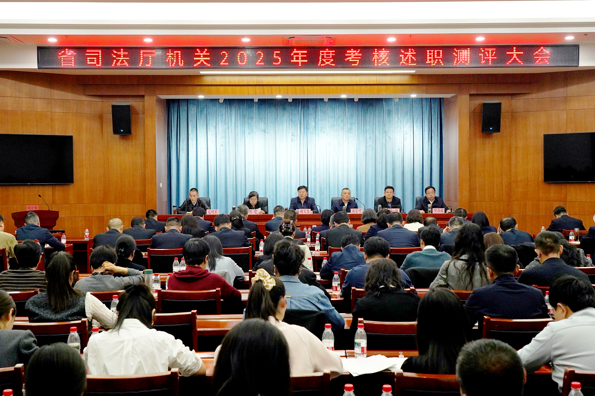 3月12日,甘肅省司法廳機(jī)關(guān)2025年度考核述職測評(píng)大會(huì)召開,會(huì)議全面復(fù)盤2025年度工作,曬成績、找差距、明方向,為2026年度全省法治建設(shè)和司法行政工作高質(zhì)量發(fā)展凝聚共識(shí)、匯聚力量。甘肅省委依法治省辦副主任,廳黨委書記、廳長謝又生出席會(huì)議并講話,在家廳黨委委員、二級(jí)巡視員出席會(huì)議,廳黨委委員、政治部主任何存鵬主持會(huì)議。