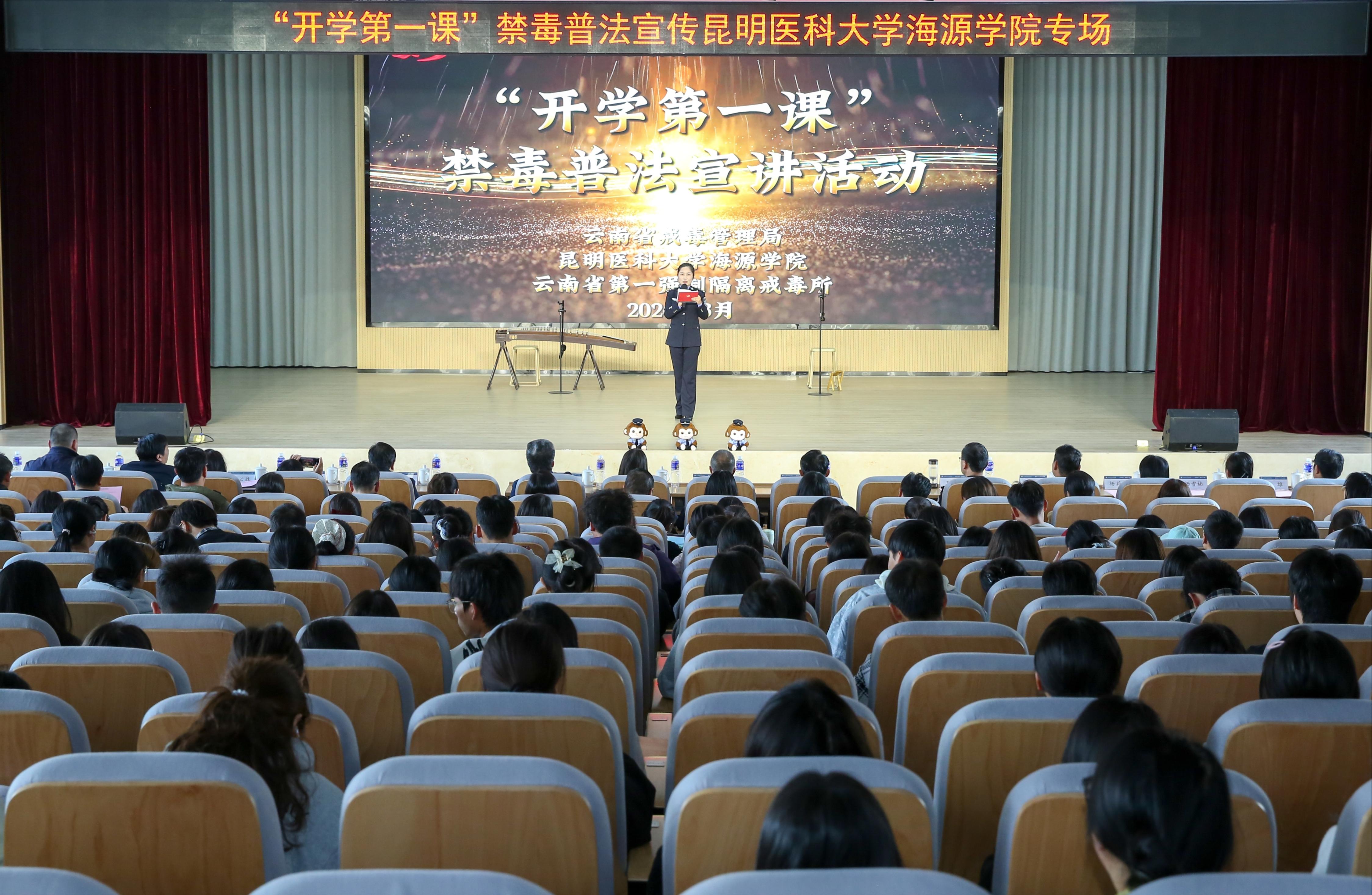 陽(yáng)春三月,桃李競(jìng)芳;青春逐夢(mèng),法治同行。2026年春季學(xué)期伊始,云南省昆明醫(yī)科大學(xué)海源學(xué)院暖意涌動(dòng),一場(chǎng)兼具專業(yè)深度與青春活力的“開學(xué)禁毒第一課”正式啟幕,云南省第一強(qiáng)制隔離戒毒所“如一”禁毒普法宣講團(tuán)為千余名醫(yī)學(xué)師生送上思想性、專業(yè)性、感染力兼具的青春必修課。云南省司法廳黨委委員、省戒毒管理局黨委書記、局長(zhǎng)楊華,團(tuán)省委、省司法廳、省教育廳、昆明醫(yī)科大學(xué)海源學(xué)院有關(guān)部門負(fù)責(zé)同志參加活動(dòng)。