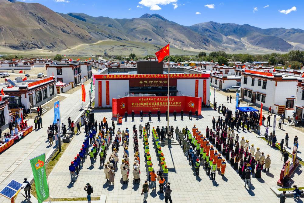 2025年8月15日,定日縣長所鄉(xiāng)森嘎村舉行“定日6.8級地震災(zāi)后恢復(fù)重建民房首批入住儀式”(無人機(jī)照片)。