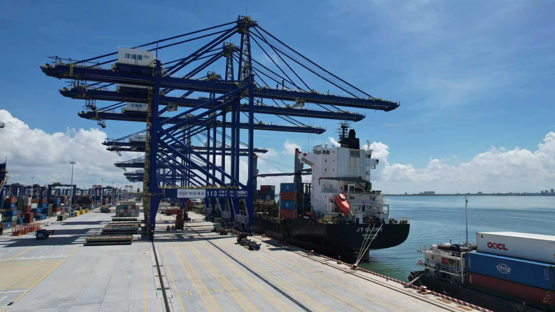 “今年我們新開(kāi)通了8條外貿(mào)航線,10月底開(kāi)通的洋浦港至秘魯錢凱港集裝箱新航線,不僅完善了洋浦港航線網(wǎng)絡(luò),更構(gòu)建起跨太平洋兩大樞紐間的暢通通道。”作為洋浦國(guó)際集裝箱碼頭的運(yùn)營(yíng)方,海南港航國(guó)際港務(wù)有限公司生產(chǎn)操作中心副總經(jīng)理杜成財(cái)介紹說(shuō)。