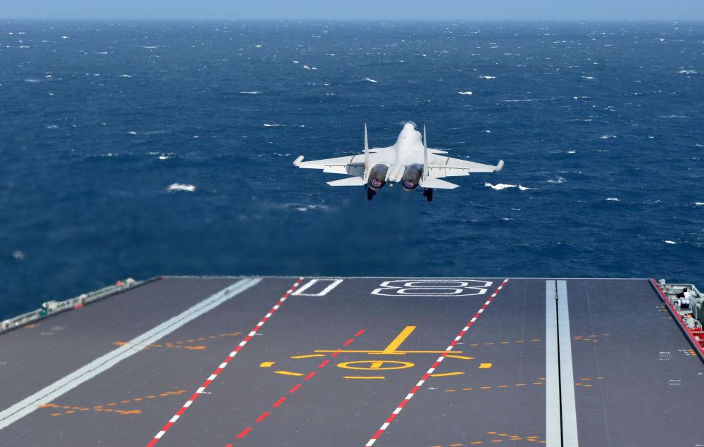 海軍福建艦開展入列后首次海上實(shí)兵訓(xùn)練期間,殲-15DT艦載機(jī)彈射起飛(資料照片)。新華社發(fā)(高澤明 攝)