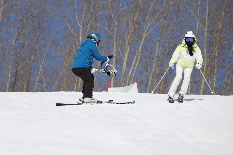 攝影師曲曉彤在跟拍滑雪愛(ài)好者。(受訪(fǎng)者供圖)