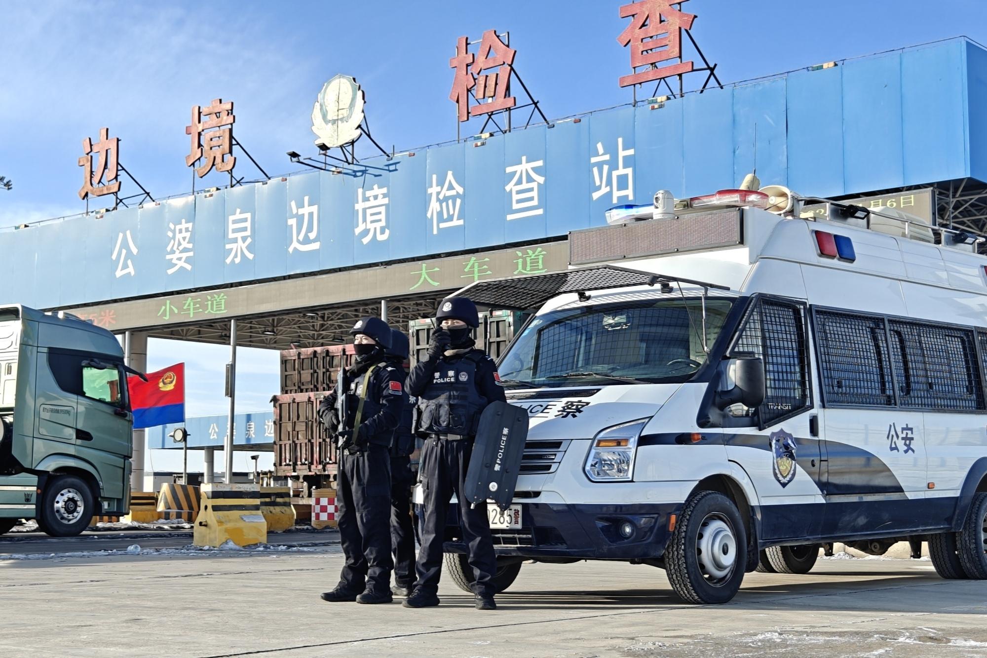 春運期間,公婆泉邊境檢查站的民警冒著嚴(yán)寒開展執(zhí)勤工作。