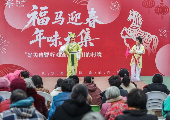 這是2026年1月23日在浙江省諸暨市東白湖鎮(zhèn)鄉(xiāng)村年味大集上拍攝的戲曲演出。新華社記者 徐昱 攝