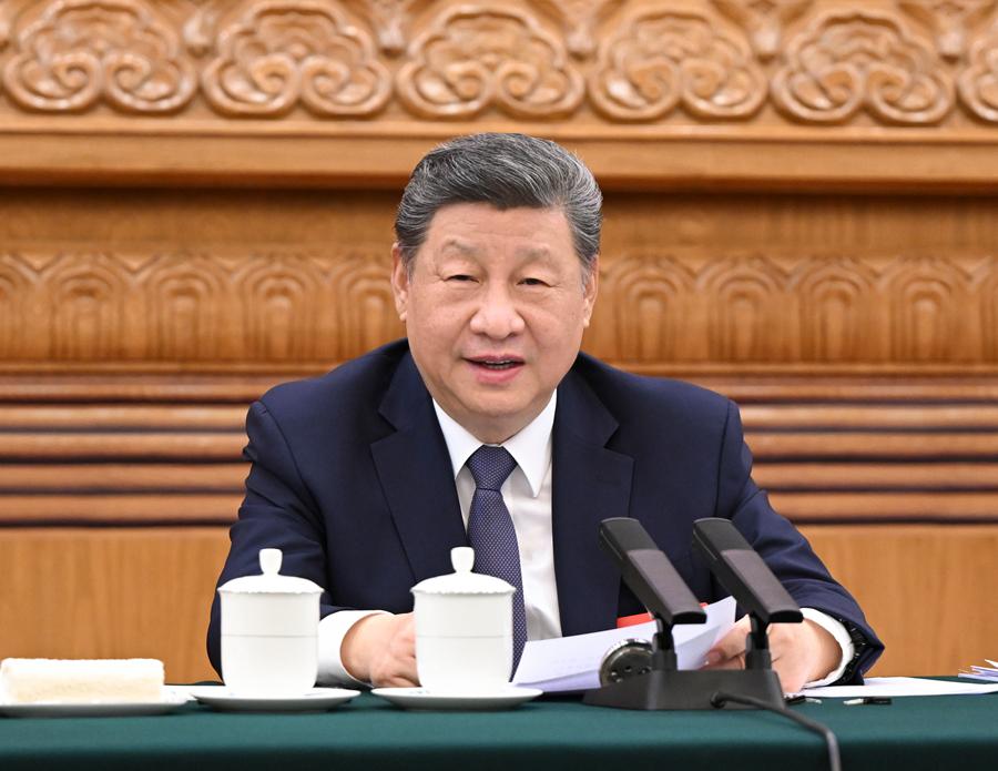 3月5日下午,中共中央總書記、國家主席、中央軍委主席習(xí)近平參加他所在的十四屆全國人大四次會(huì)議江蘇代表團(tuán)審議。新華社發(fā)(盛佳鵬攝)