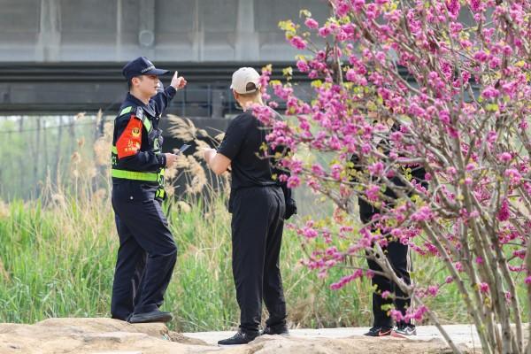 圖為濰坊站派出所民警向沿線踏青出游的居民普及線路安全防范知識(shí)。