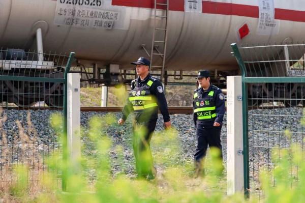 圖為南仇站派出所民警加強(qiáng)對(duì)轄區(qū)重點(diǎn)部位巡視,保障貨物運(yùn)輸安全。