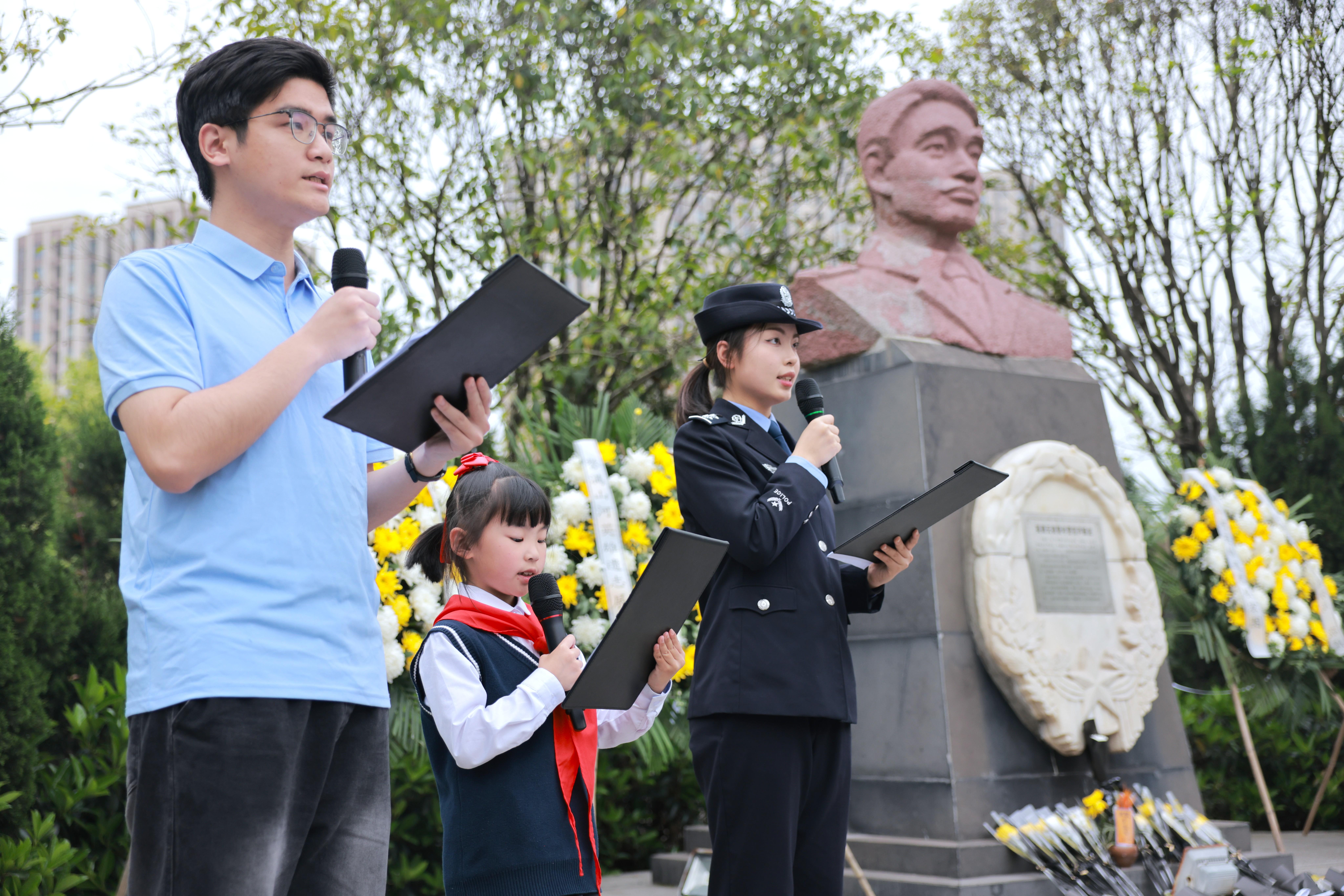 清明時節(jié),重慶市九龍坡區(qū)鳳西路烈士公園松柏肅立。4月1日下午,重慶市公安局九龍坡區(qū)分局青年民警、西南政法大學學生代表、江州小學少先隊員齊聚蘆振龍烈士雕像前,敬獻花籃、脫帽默哀。1999年5月27日,時任石橋鋪派出所戶籍民警的蘆振龍,在傳喚嫌疑人時遭7名歹徒持刀襲擊,身負21處刀傷仍5次掙扎起身試圖制敵,犧牲時年僅25歲,同年被追授“全國公安系統(tǒng)一級英雄模范”稱號。
