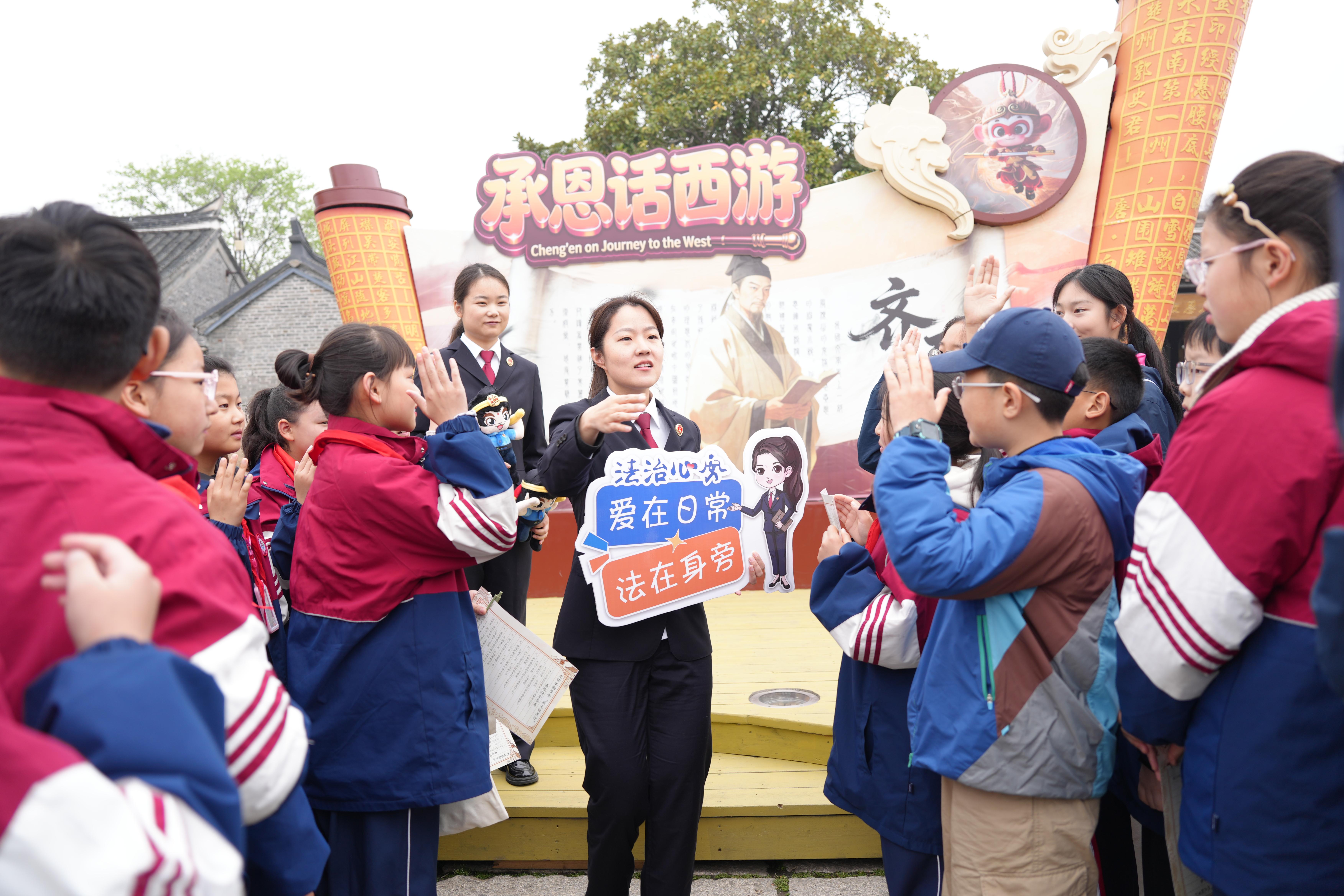 江蘇省中小學(xué)首個(gè)春假的第一天,淮安市淮安區(qū)人民檢察院檢察官來到吳承恩故居,為前來研學(xué)的學(xué)生游客帶來一場別開生面的“法話西游”沉浸式普法活動(dòng)?;顒?dòng)現(xiàn)場,檢察官巧妙地將“紅孩兒索要保護(hù)費(fèi)”“黑熊精偷竊袈裟”等《西游記》經(jīng)典情節(jié),轉(zhuǎn)化為生動(dòng)的法律案例,通過趣味問答的方式,引導(dǎo)孩子們在輕松愉快的氛圍中學(xué)習(xí)法律知識(shí),進(jìn)一步增強(qiáng)他們的法治意識(shí)和自我保護(hù)能力。