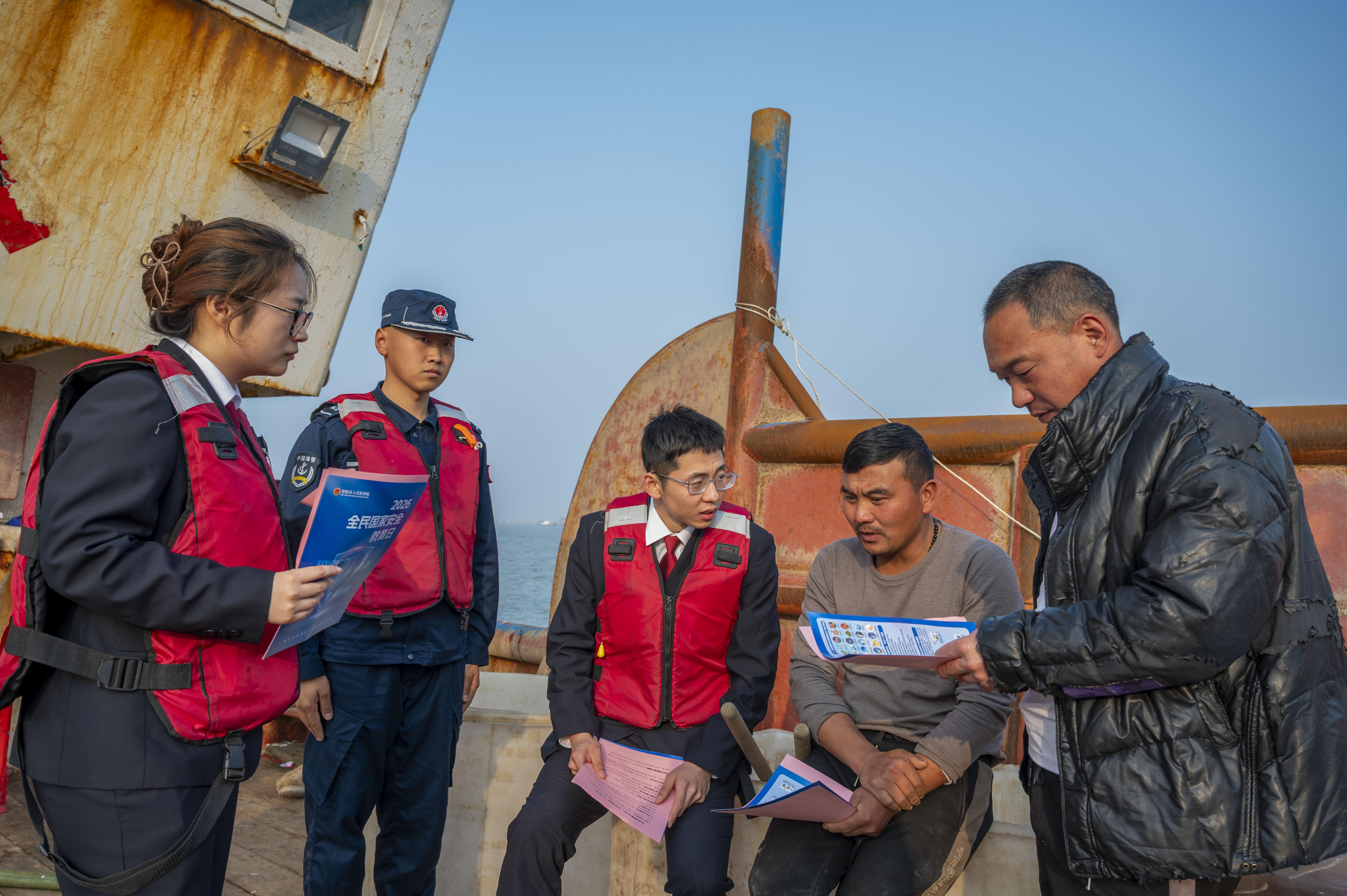 為進一步增強全民國家安全意識和素養(yǎng),在第11個全民國家安全教育日來臨之際,近日,江蘇省鹽城市射陽縣人民檢察院聯(lián)合鹽城海警局射陽工作站共同前往黃沙港碼頭、社區(qū)、海上巡航區(qū)域等地開展聯(lián)合普法宣傳,通過發(fā)放宣傳單、現場答疑解惑等方式,向漁民、社區(qū)居民、船員等普及國家安全知識,重點講解海洋生態(tài)安全、反間諜、保密義務等內容。