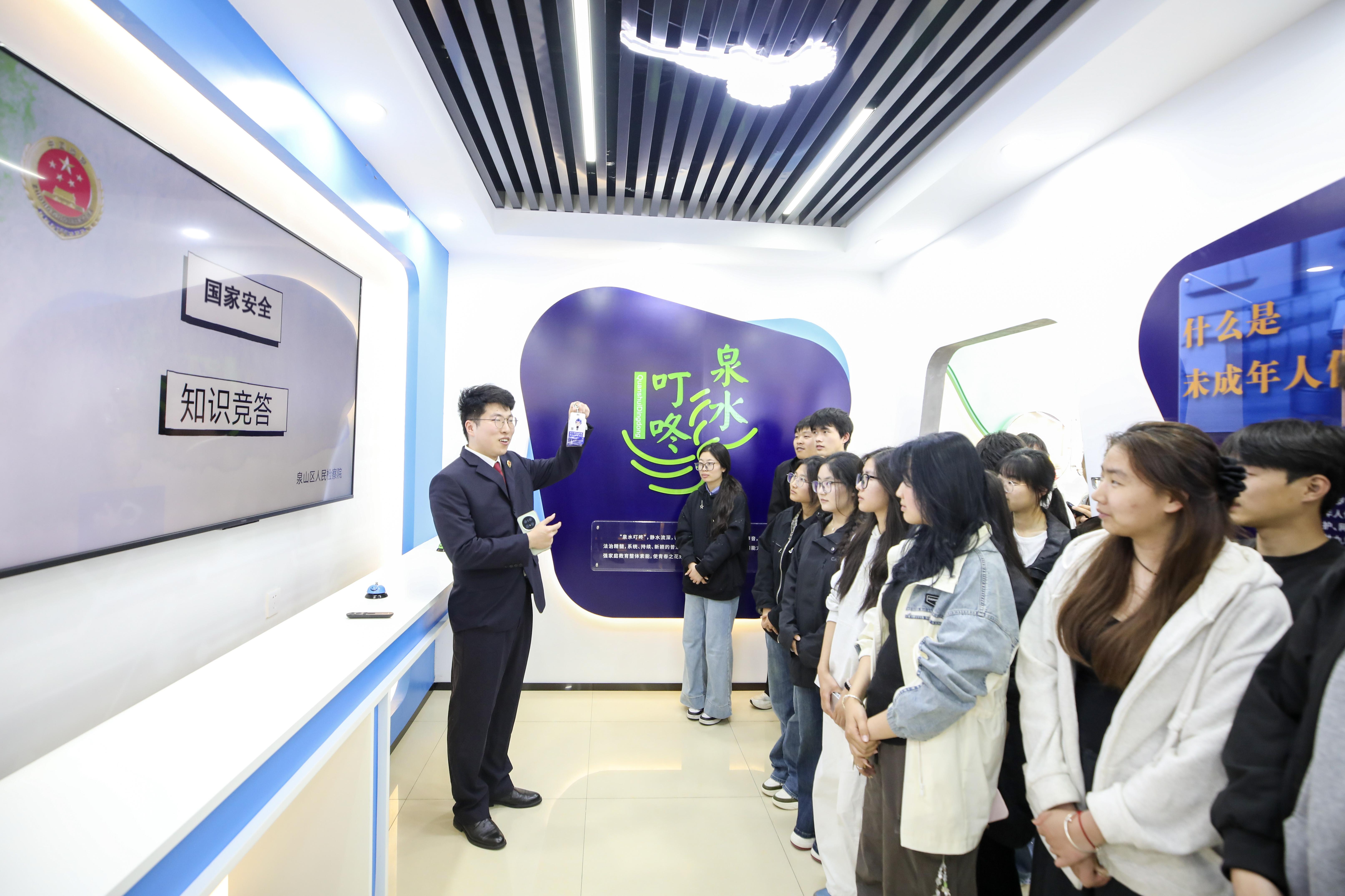 在第十一個全民國家安全教育日來臨之際,江蘇省徐州市泉山區(qū)人民檢察院邀請徐州工業(yè)職業(yè)技術(shù)學(xué)院師生走進(jìn)未成年人法治教育基地,開展國家安全教育普法活動,通過現(xiàn)場講解、國家安全知識問答等互動形式,引導(dǎo)同學(xué)們在輕松有趣的氛圍中學(xué)習(xí)國家安全相關(guān)法律知識。