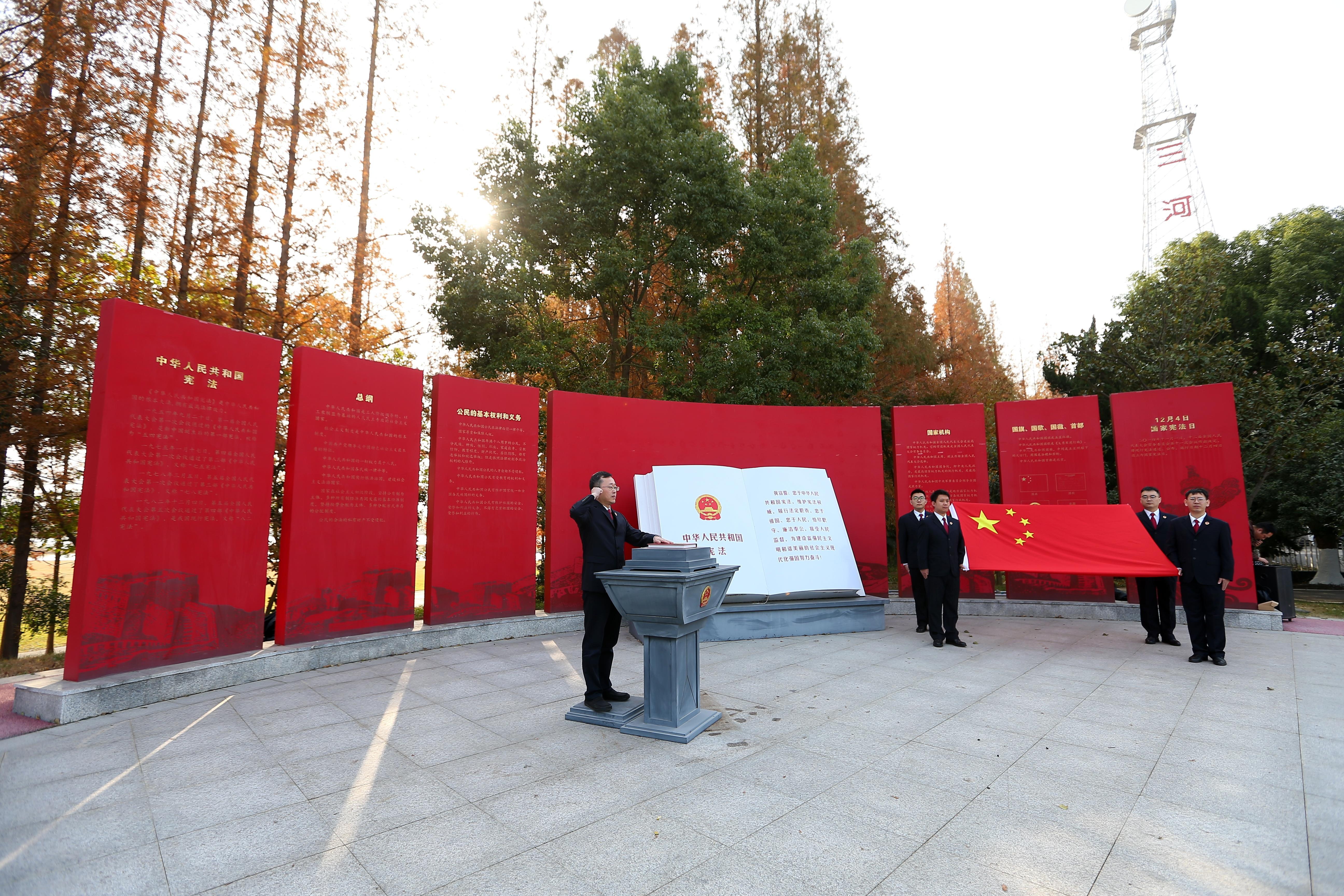 12月1日上午,江蘇省淮安市洪澤區(qū)人民檢察院在江蘇省三河閘管理所憲法宣誓臺前莊嚴(yán)舉行憲法宣誓儀式。在該院檢察長居寧超的帶領(lǐng)下,檢察干警右手舉拳擲地有聲跟誦憲法誓詞,展現(xiàn)了新時代檢察人員對憲法的無限尊崇、對法治的堅(jiān)定信仰和對人民的莊嚴(yán)承諾。