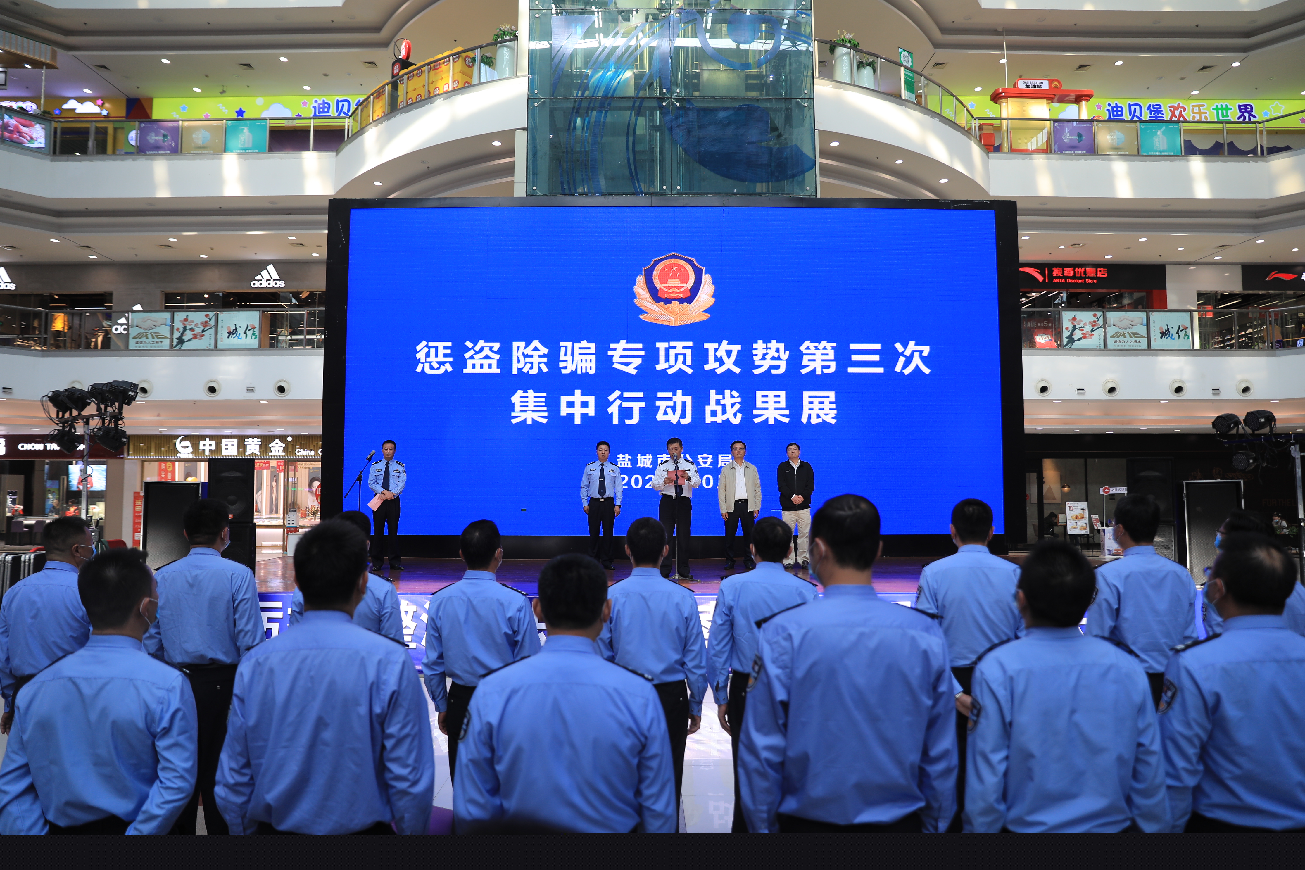 抓獲違法犯罪嫌疑人279名、繳獲手機(jī)卡16148張、銀行卡789張……10月19日下午,鹽城警方在寶龍廣場(chǎng)舉行懲盜除騙專項(xiàng)攻勢(shì)第三次集中行動(dòng)戰(zhàn)果展,假公章、POS機(jī)、刻章機(jī)等行動(dòng)期間收繳的一批設(shè)備引來群眾圍觀,紛紛拍手稱快。