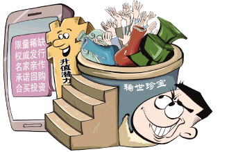 讓普通的流水線作業(yè)、批量生產(chǎn)的大路貨、地攤貨,搖身變成大師之作、稀缺限量的“藏品”,到這里還不算完,在銷售環(huán)節(jié)還會有一系列令人眼花繚亂的操作,對作者進行虛假包裝,對“藏品”的收藏價值、升值空間進行虛構(gòu)等。