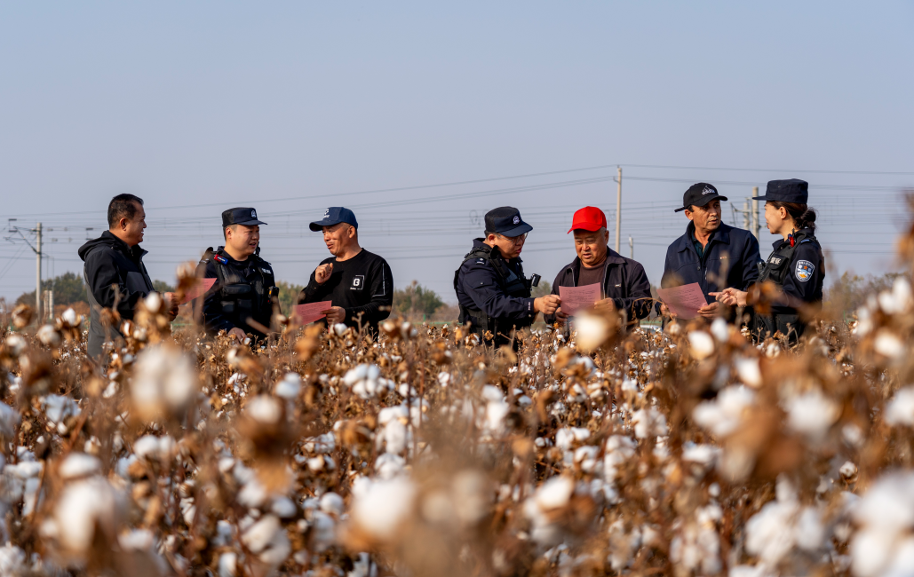 正值新疆棉花豐收季,10月21日,烏魯木齊鐵路公安處呼圖壁站派出所組織民警深入轄區(qū)棉花地與軋花場向棉農(nóng)宣傳愛路護(hù)路及消防安全知識,筑牢棉區(qū)安全防線。