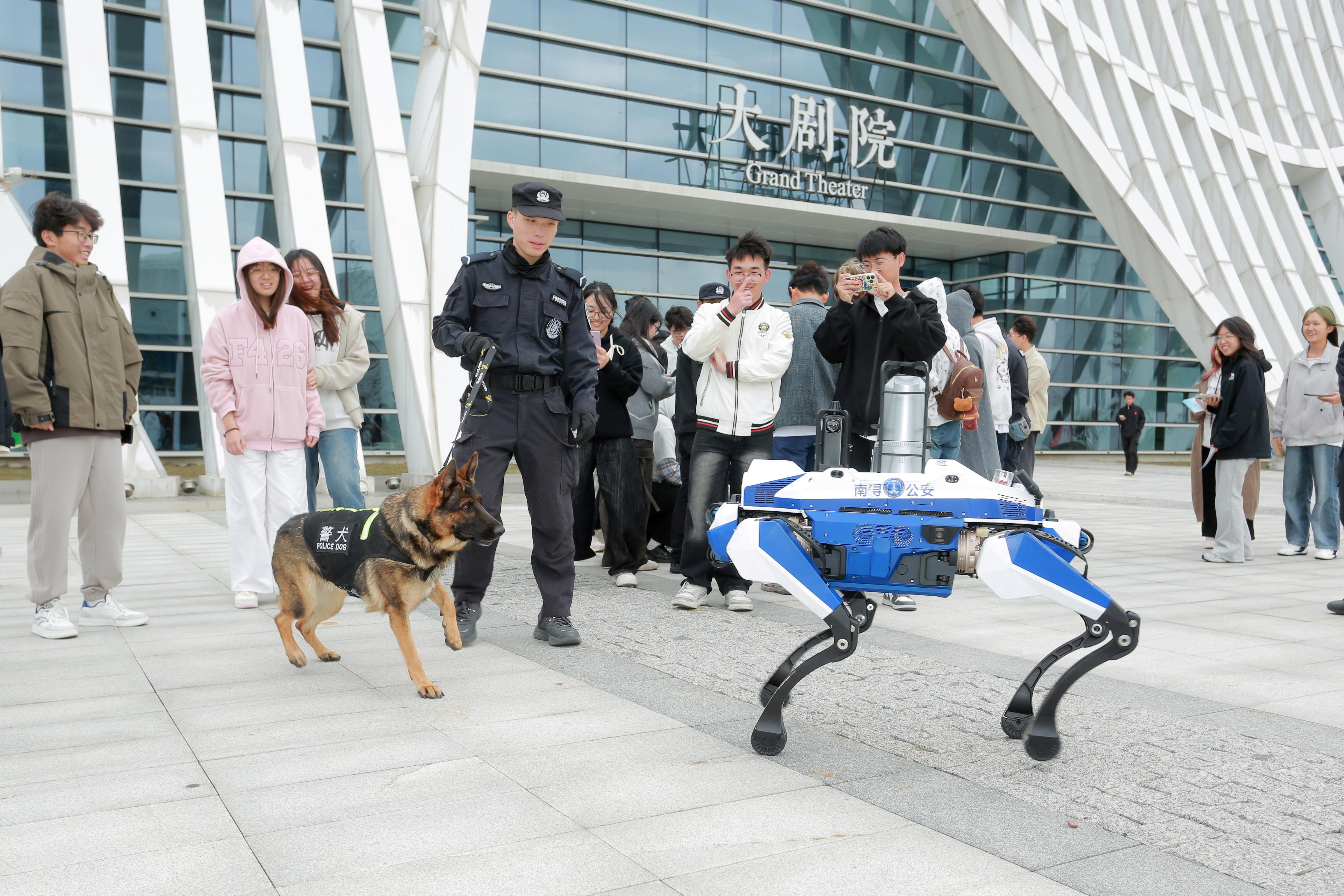 學(xué)生小王說(shuō):“第一次近距離看到緝毒犬和機(jī)器狗,感覺(jué)特別震撼!緝毒犬特別靈敏,馴導(dǎo)員剛把藏了模擬毒品的箱子擺好,它立馬就聞著味兒湊過(guò)去,尾巴還輕輕晃,又專業(yè)又可愛(ài);機(jī)器狗更讓我眼前一亮,它能靈活穿梭在市集的桌椅之間,攝像頭實(shí)時(shí)傳輸畫面,還能根據(jù)指令停下來(lái)‘檢查’,科技感滿滿?!?/p>