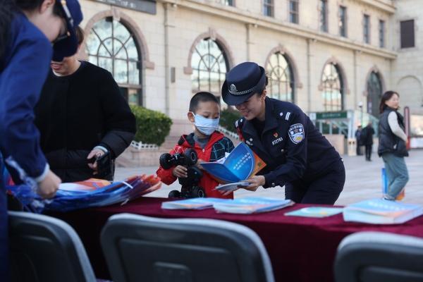 11月7日,青島鐵路公安處特警支隊聯(lián)合青島站派出所、青島消防支隊市南大隊在青島站廣場開展消防安全知識普及宣傳活動。