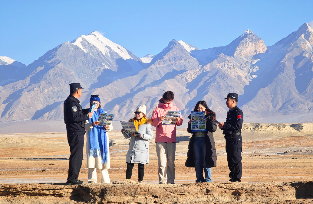 11月18日,新疆木吉邊境派出所民警深入轄區(qū)旅游景點(diǎn)“火山口景區(qū)”內(nèi)開展巡邏走訪、服務(wù)群眾等工作。其間,民警向游客介紹景區(qū)特色和注意事項(xiàng),并通過(guò)發(fā)放宣傳手冊(cè)等形式向游客介紹關(guān)于陸地邊界的法律法規(guī)、防范電信網(wǎng)絡(luò)詐騙等知識(shí),進(jìn)一步提高游客在邊境游玩時(shí)的防范意識(shí),全面護(hù)航景區(qū)平安,助力駐地旅游經(jīng)濟(jì)發(fā)展。