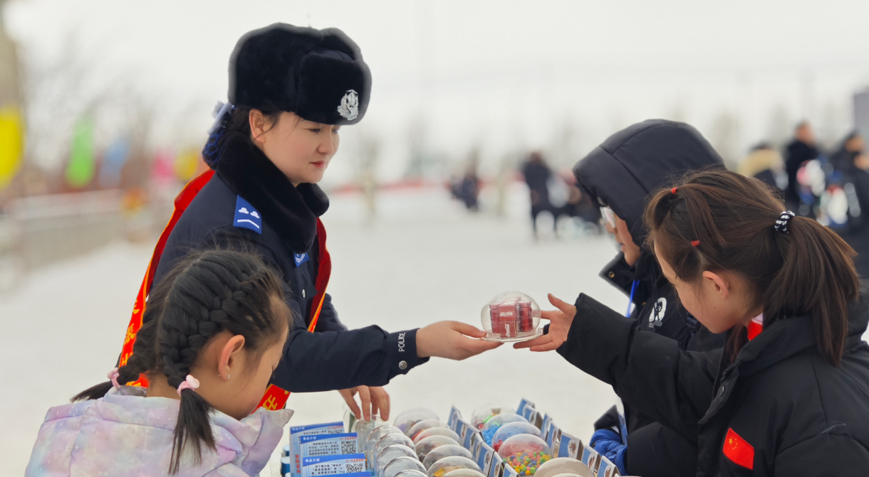 新疆奇臺縣公安局奇臺鎮(zhèn)犁鏵尖派出所創(chuàng)新“安保+普法”服務(wù)模式,將禁毒宣傳融入冰雪嘉年華,讓識毒、防毒、拒毒的種子隨冰上競技的熱情一同播撒。