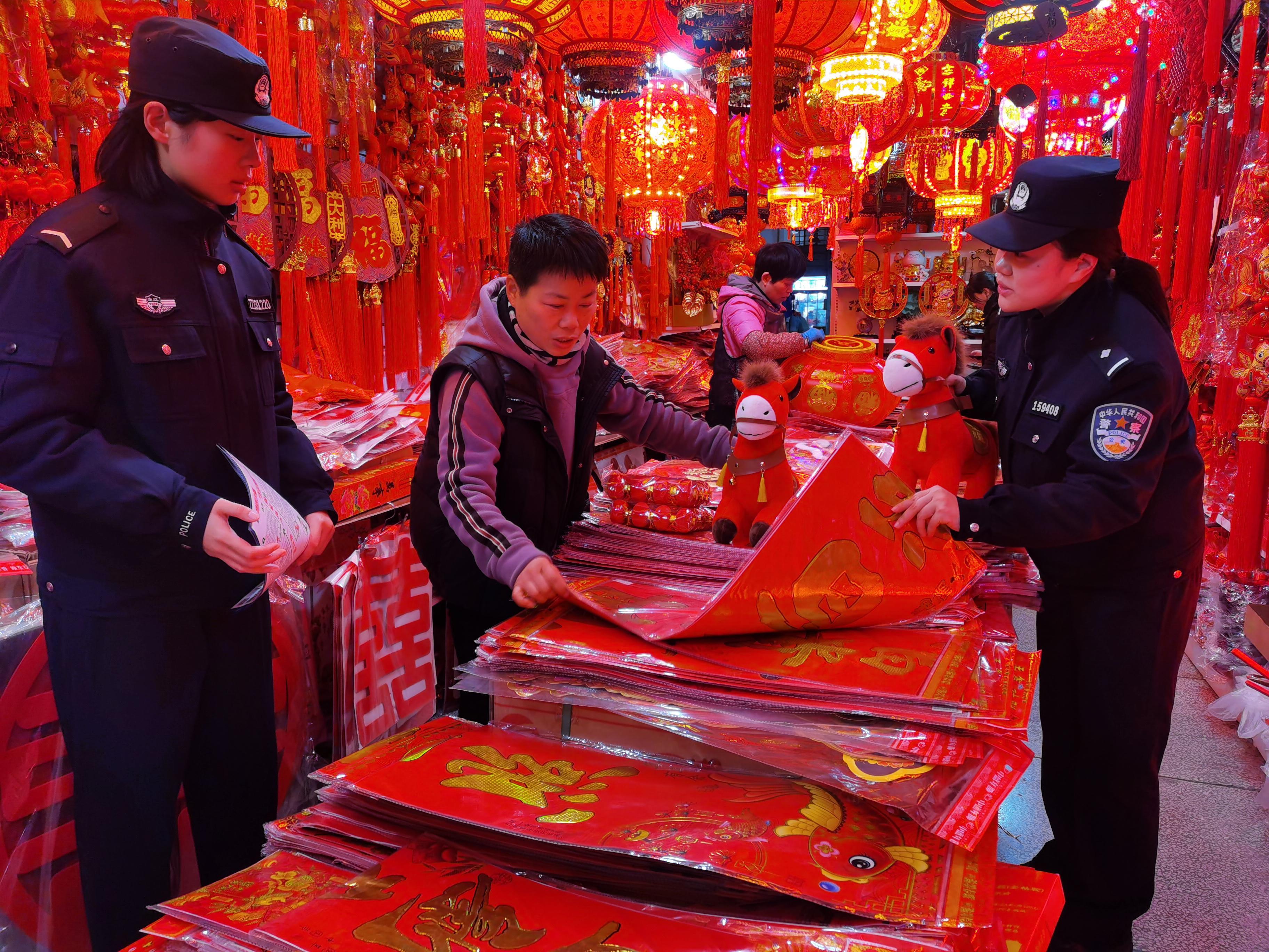 新春佳節(jié)臨近,浙江省東陽市公安局南市派出所結(jié)合“冬季攻堅(jiān)行動(dòng)”,民警勤訪年貨市場(chǎng)護(hù)安寧。
