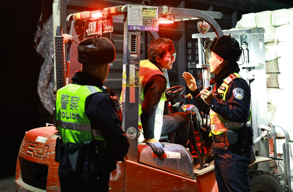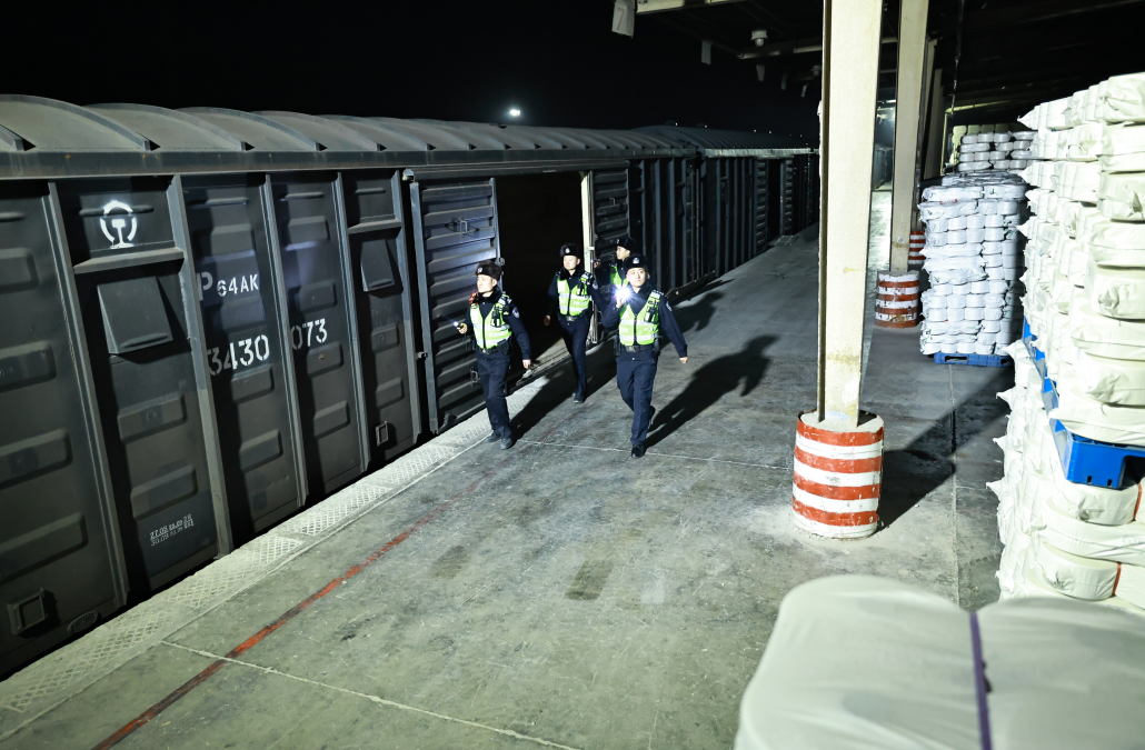 烏魯木齊鐵路公安局庫(kù)爾勒公安處阿克蘇站派出所全力保障轄區(qū)“雪蓮速運(yùn)”棉花班列重點(diǎn)物資運(yùn)輸,抽調(diào)骨干民警開(kāi)展治安巡邏、消防隱患排查、作業(yè)人員安全宣傳等工作,全力保障棉紗專列順利開(kāi)行。