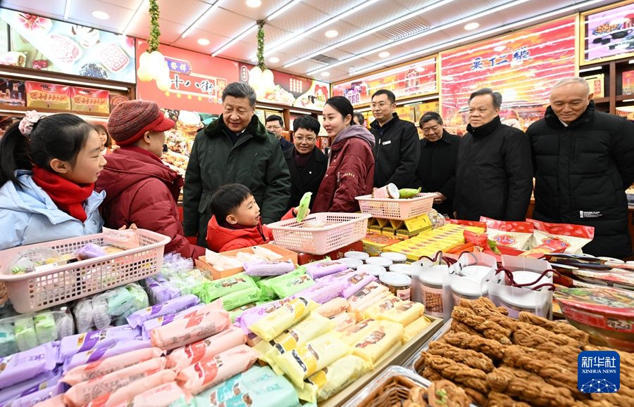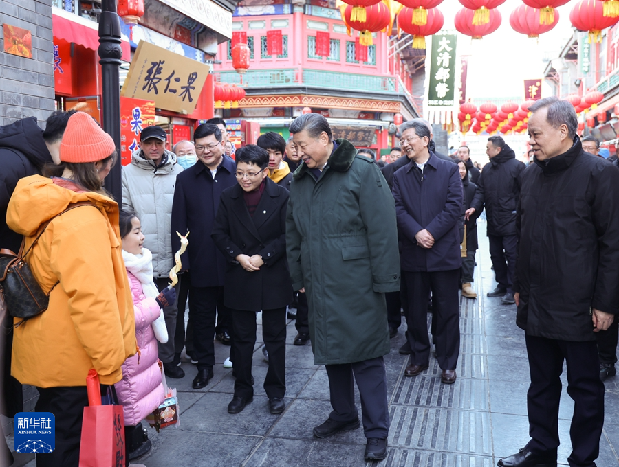 當天下午,習近平來到天津古文化街。街道古色古香,習近平沿街步行,先后走進桂發(fā)祥十八街麻花、果仁張、泥人張、楊柳青年畫等特色店鋪,了解產(chǎn)品種類、銷售和傳統(tǒng)文化傳承發(fā)展等情況,同店鋪業(yè)主、員工和現(xiàn)場群眾互動交流。他說,各級黨委和政府要加強節(jié)日期間民生商品的產(chǎn)銷保供,確保數(shù)量充足、品類豐富、質量可靠,讓廣大群眾放心消費、快樂過年。習近平指出,中國式現(xiàn)代化離不開優(yōu)秀傳統(tǒng)文化的繼承和弘揚,天津是一座很有特色和韻味的城市,要保護和利用好歷史文化街區(qū),使其在現(xiàn)代化大都市建設中綻放異彩。