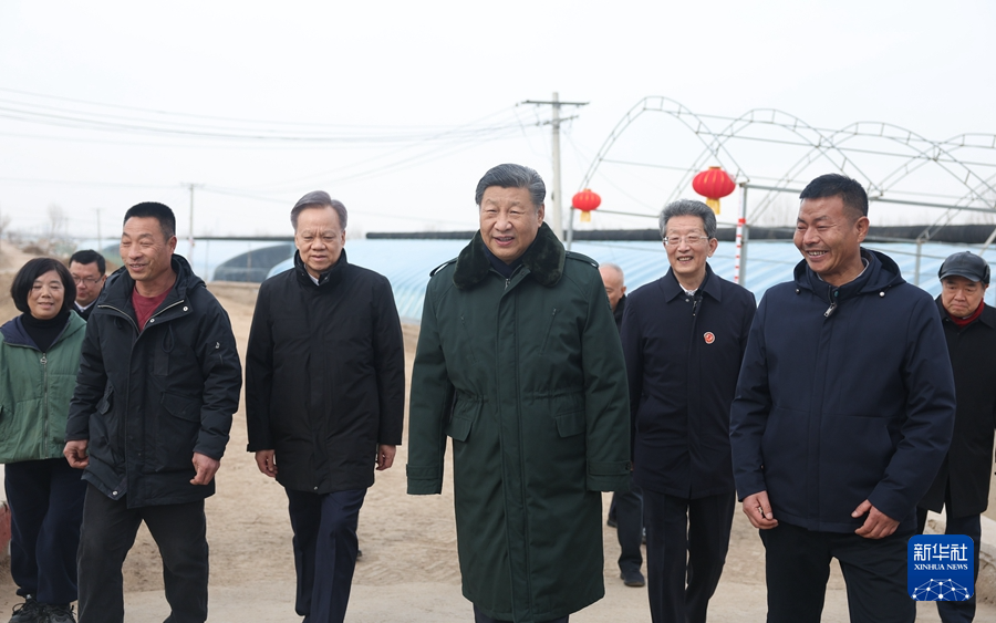 2月1日至2日,中共中央總書記、國家主席、中央軍委主席習近平來到天津,看望慰問基層干部群眾。這是1日上午,習近平在西青區(qū)辛口鎮(zhèn)第六埠村考察,實地察看去年洪澇災害后當?shù)剞r(nóng)業(yè)生產(chǎn)恢復等情況。新華社記者 鞠鵬 攝