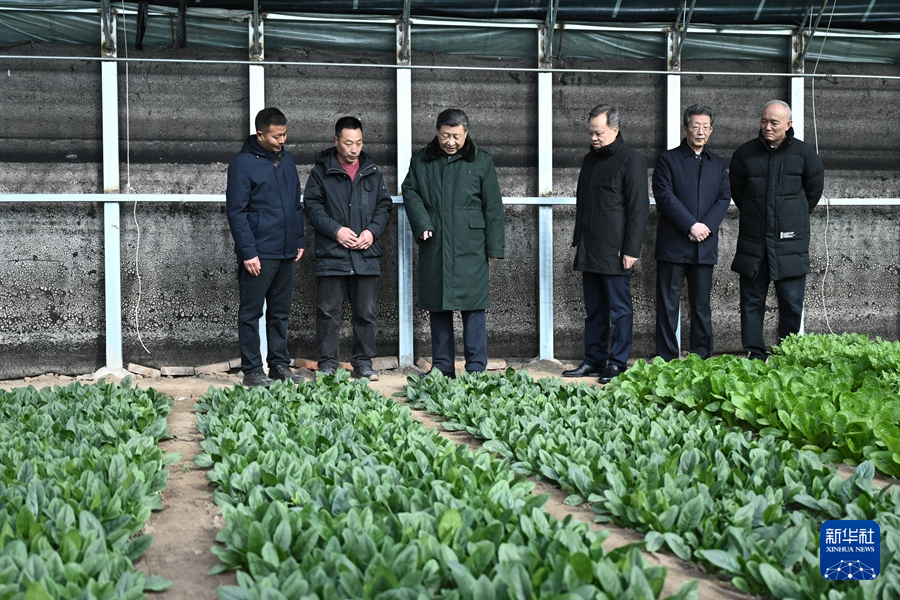 2月1日至2日,中共中央總書記、國家主席、中央軍委主席習近平來到天津,看望慰問基層干部群眾。這是1日上午,習近平在西青區(qū)辛口鎮(zhèn)第六埠村實地察看去年洪澇災害后當?shù)剞r(nóng)業(yè)生產(chǎn)恢復等情況時,走進大棚看蔬菜長勢。新華社記者 燕雁 攝
