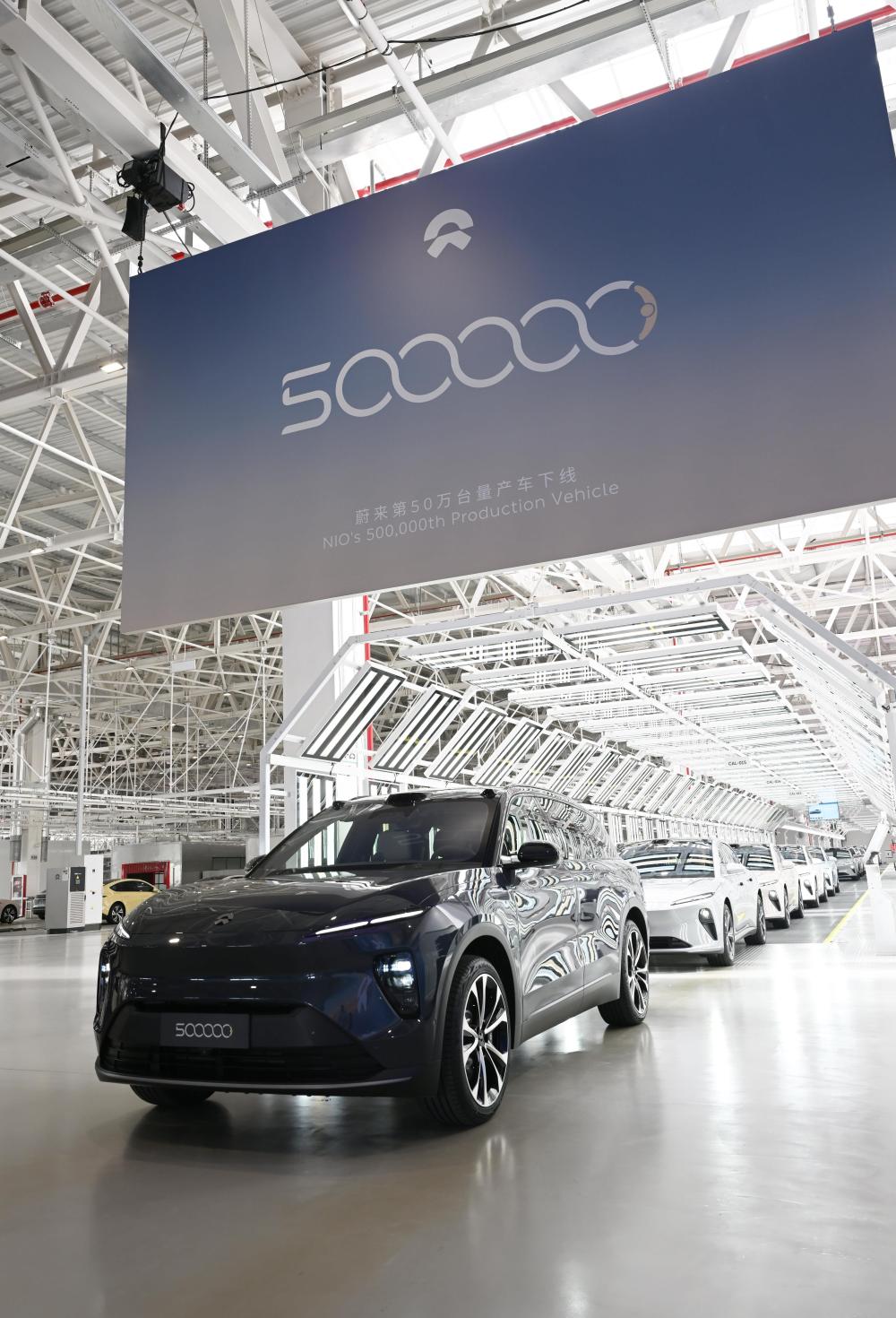 在安徽省合肥市新橋智能電動(dòng)汽車產(chǎn)業(yè)園蔚來合肥第二工廠,蔚來第50萬臺(tái)量產(chǎn)車下線(2024年5月9日攝)。新華社記者 周牧 攝