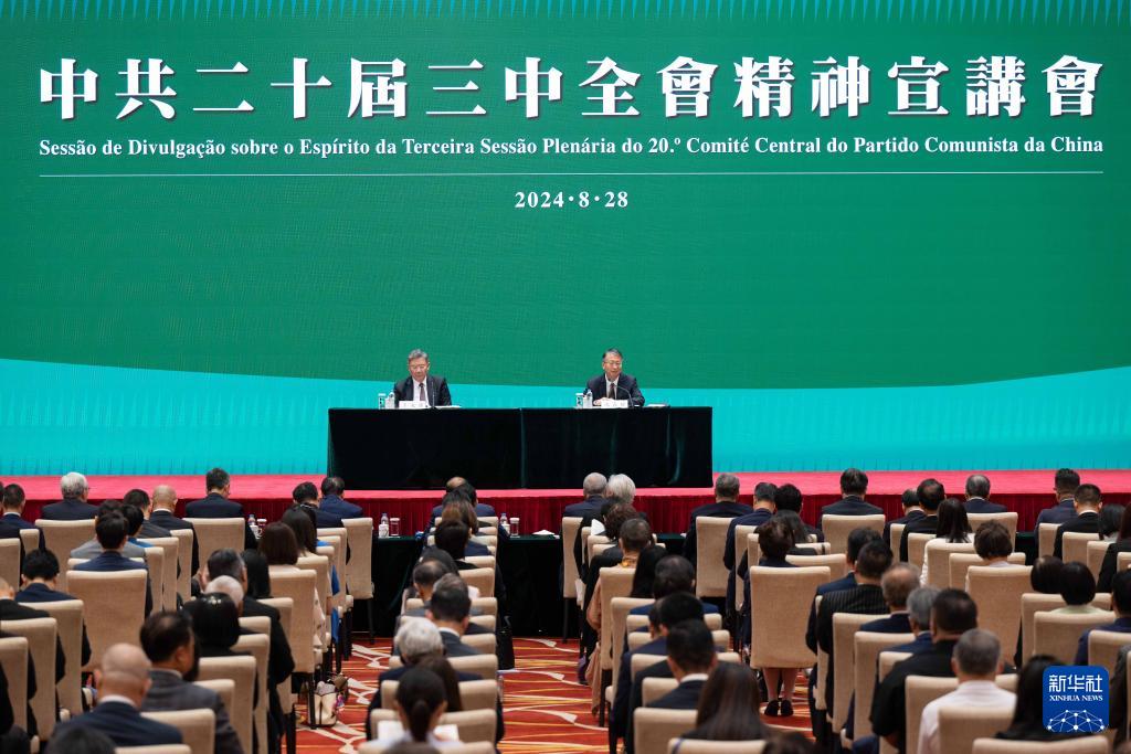 8月28日,學(xué)習(xí)貫徹黨的二十屆三中全會(huì)精神中央宣講團(tuán)在澳門特區(qū)為社會(huì)各界人士宣講。新華社記者 張金加 攝