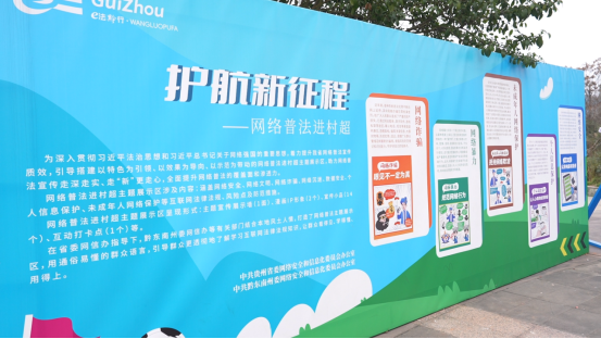 “村超普法點(diǎn)”是一個(gè)集普法宣傳、互動(dòng)體驗(yàn)、教育展覽、法律服務(wù)等多功能于一體的綜合性普法平臺(tái)。在“村超”比賽現(xiàn)場(chǎng)及周邊區(qū)域,設(shè)置了展示網(wǎng)絡(luò)安全、網(wǎng)絡(luò)詐騙等內(nèi)容的展板,并組織普法志愿者向觀眾發(fā)放普法宣傳資料,講解法律知識(shí)。
