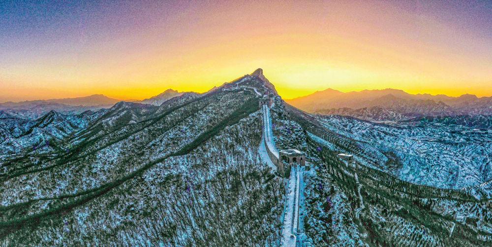 如今已定居武漢的老陳,雖然離開了長(zhǎng)城腳下的村落,仍要在每年回家團(tuán)圓之時(shí),攀登、記錄下這座伴自己成長(zhǎng)的長(zhǎng)城;來(lái)自巴西的柯林斯一家,游覽了廣州、成都、西安等城市后,來(lái)到北京想要過(guò)一個(gè)“地道中國(guó)年”,聽(tīng)說(shuō)新年登高有“步步高”的意蘊(yùn),便決定來(lái)爬司馬臺(tái);在這段長(zhǎng)城的最高點(diǎn),五位來(lái)自密云區(qū)第二中學(xué)的高三學(xué)生正在背誦《清平樂(lè)·六盤山》,“六盤山上高峰,紅旗漫卷西風(fēng)。今日長(zhǎng)纓在手,何時(shí)縛住蒼龍?”言語(yǔ)中滿是青年對(duì)未來(lái)的憧憬與豪情……