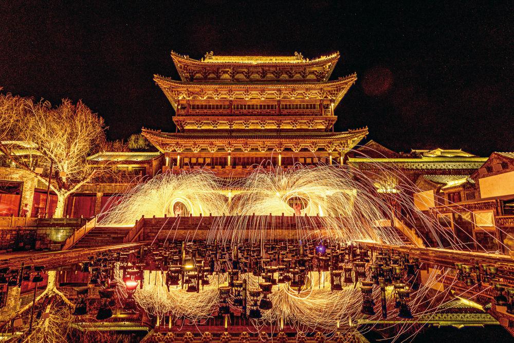 這是古北水鎮(zhèn)中的“風(fēng)火流星”表演。北京市密云區(qū)供圖