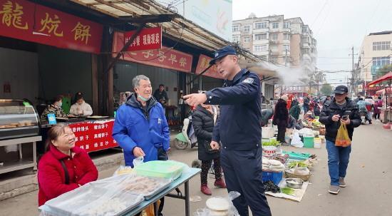 圖為漁薪派出所副所長孫余沵叮囑商戶繃緊安全弦。