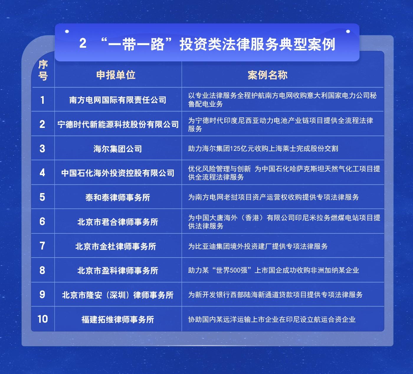 “一帶一路”法律服務(wù)創(chuàng)新典型案例名單