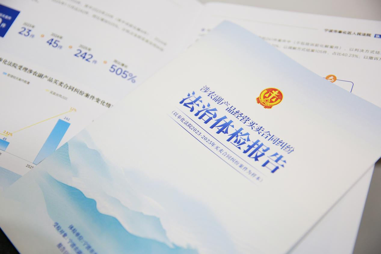 如何讓專業(yè)的法律分析“飛入尋常百姓家”,真正起到“審理一案、治理一片”的效果,奉化區(qū)人民法院決定在形式上來(lái)點(diǎn)“新花樣”。2025年12月,部分市、區(qū)兩級(jí)人大代表、政協(xié)委員與經(jīng)營(yíng)戶代表齊聚奉化區(qū)人民法院方橋法庭,共同見(jiàn)證了《涉農(nóng)副產(chǎn)品經(jīng)營(yíng)買賣合同糾紛法治體檢報(bào)告》的發(fā)布。