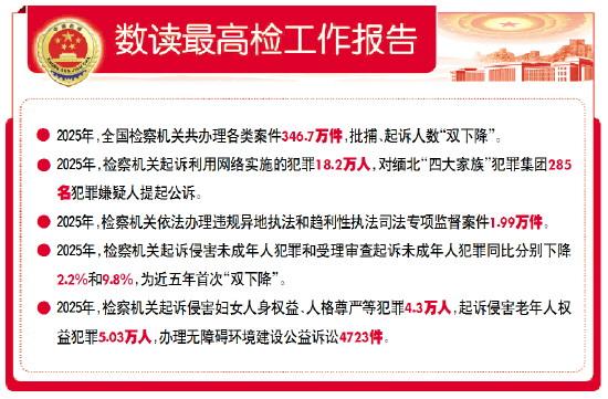 【解讀】“‘強化檢察監(jiān)督’是貫穿報告始終的一條主線。”楊劍波介紹說,持續(xù)提升法律監(jiān)督質(zhì)效,推動刑事、民事、行政、公益訴訟“四大檢察”全面協(xié)調(diào)充分發(fā)展。2025年,最高檢為精準(zhǔn)監(jiān)督趨利性執(zhí)法司法問題,逐步建立了一套從線索發(fā)現(xiàn)、線索研判到督辦交辦、辦結(jié)反饋的全流程機制。截至2025年12月,最高檢、省級檢察院督辦重點案件505件。在推進專項監(jiān)督中,注重監(jiān)督糾正經(jīng)營主體和人民群眾反映強烈的突出問題,注重從制度機制層面剖析根源、堵住漏洞,推動實現(xiàn)標(biāo)本兼治,鞏固深化監(jiān)督成果。研究起草依法加強刑事訴訟查封、扣押、凍結(jié)等強制措施監(jiān)督工作的規(guī)范性文件,建立健全加強跨省涉企刑事案件法律監(jiān)督機制,努力從源頭上推動解決違規(guī)異地執(zhí)法和趨利性執(zhí)法司法問題。
