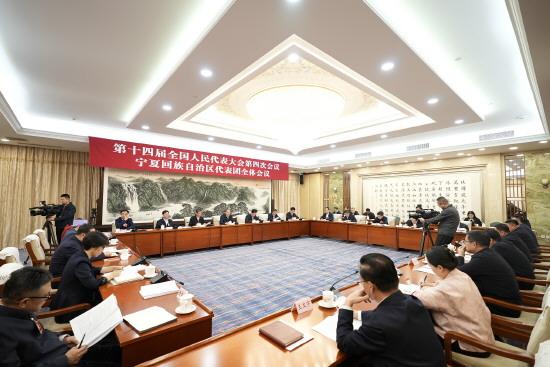 3月9日,十四屆全國人大四次會議寧夏回族自治區(qū)代表團舉行全體會議,審議全國人大常委會工作報告、全國人大常委會關(guān)于法律清理工作情況和有關(guān)法律和決定處理意見的報告。 本報記者 李唯祎 攝
