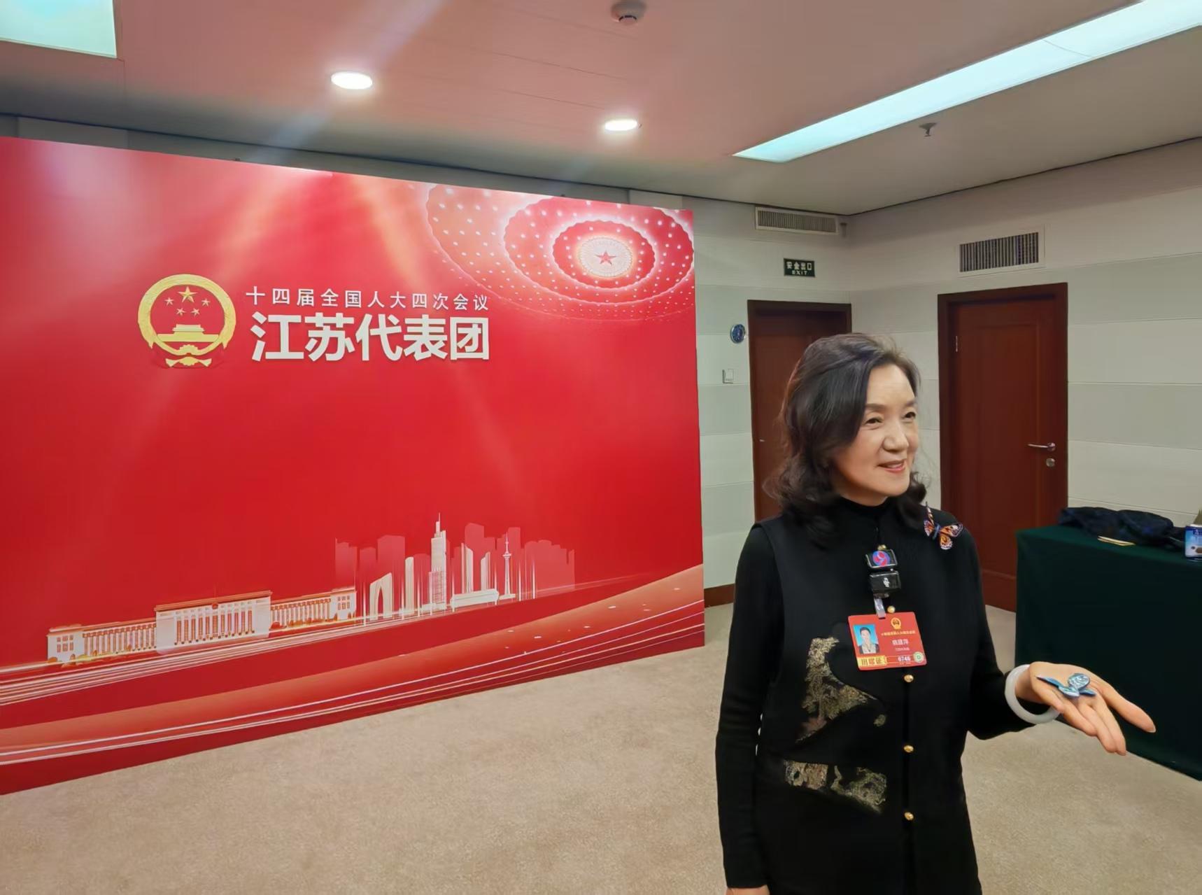 “這枚胸針,是法國設計師和我們團隊共同創(chuàng)作,用蘇繡、珠寶和現(xiàn)代工藝設計而成。”3月7日晚,在全國兩會江蘇代表團駐地,全國人大代表,蘇州高新區(qū)鎮(zhèn)湖刺繡研究所藝術總監(jiān)姚建萍向《法治日報》全媒體記者展示了一枚精美的蝴蝶胸針。這只蝴蝶,正是她推動非遺“年輕化、時尚化、國際化”的縮影。