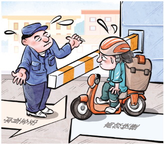 近年來,人們?cè)谙硎芡赓u、快遞便捷服務(wù)的同時(shí),外賣員、快遞員因能否進(jìn)小區(qū)、騎電動(dòng)車橫沖直撞、亂停放等問題屢屢與小區(qū)保安發(fā)生沖突。