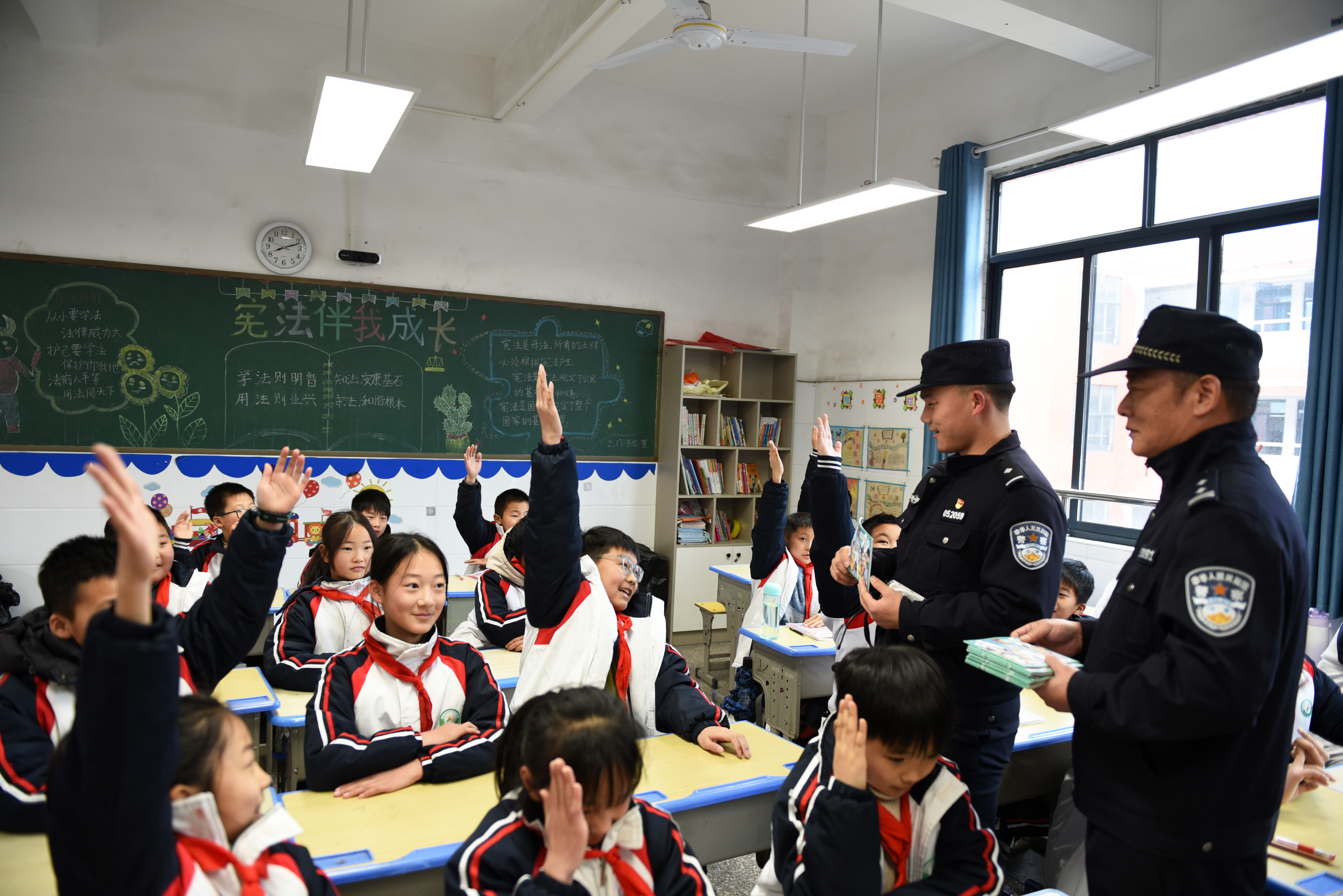 龍年春季開學(xué)伊始,江西省分宜縣公安局組織民警走進轄區(qū)校園,為學(xué)生普及交通安全、校園欺凌、抵制毒品等相關(guān)法律知識。圖為2月26日,民警為分宜四小學(xué)生上安全教育“開學(xué)第一課”。