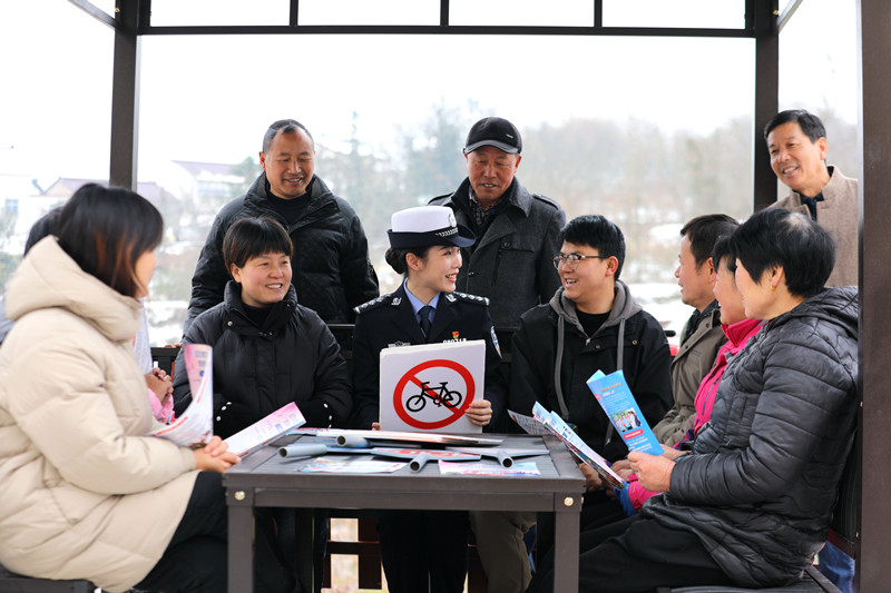 2月26日,安徽省舒城縣公安局交管大隊(duì)民警來到闕店鄉(xiāng)楓嶺村開展交通安全宣傳活動(dòng),民警通過拉家常方式向村民普及道路交通安全法律法規(guī),提醒廣大村民安全文明出行。圖為民警向村民講解道路交通安全知識(shí)。