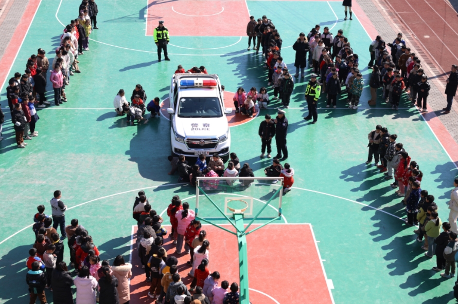 為進一步筑牢寒假期間交通安全防線,江西省遂川縣公安局交警大隊近日組織民警走進轄區(qū)中小學(xué)校,開展交通安全宣傳活動。圖為1月10日,民警在遂川縣大汾鎮(zhèn)寨溪小學(xué)向?qū)W生講解機動車駕駛盲區(qū)知識。