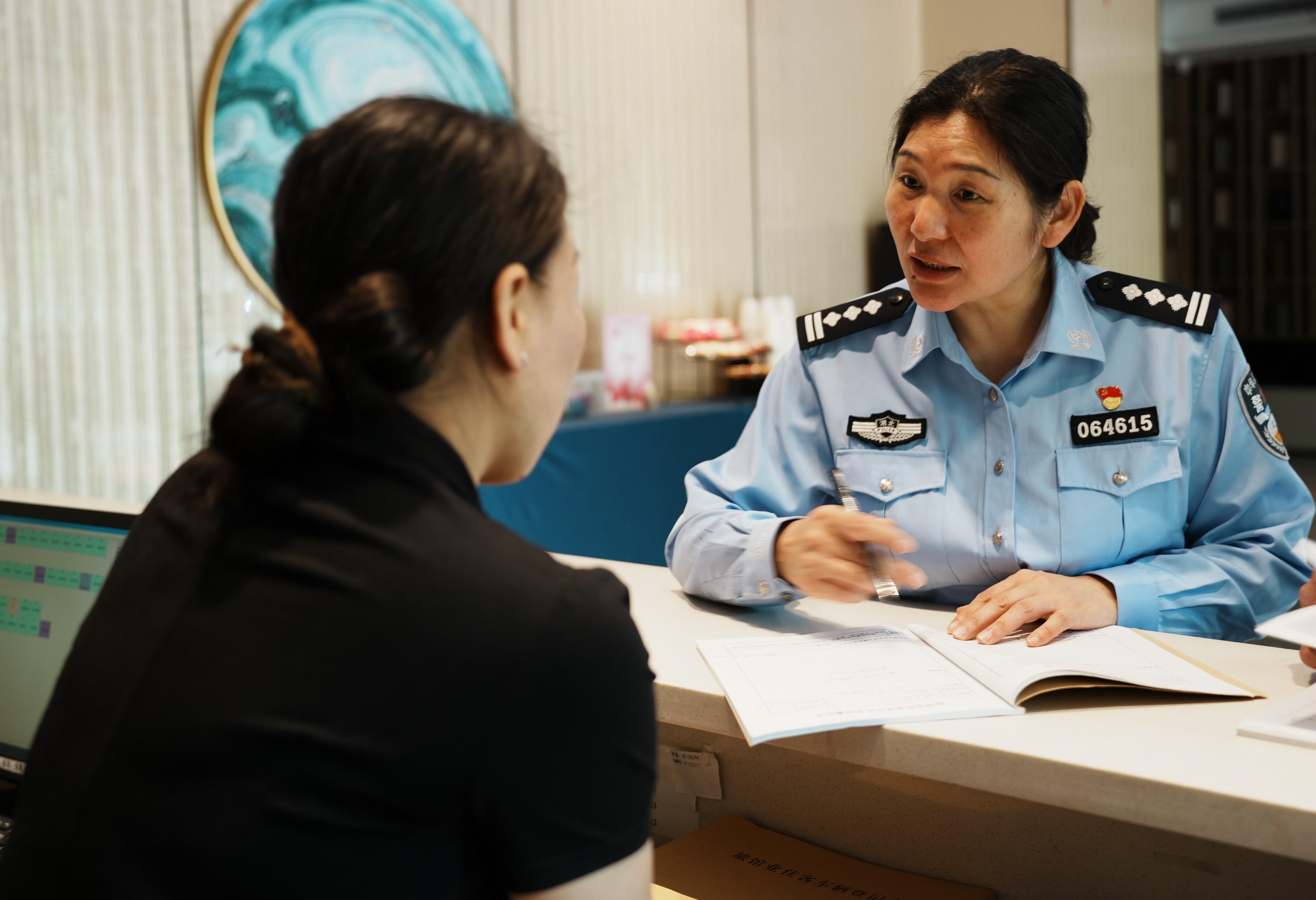 圖為社區(qū)民警劉瑞玲在對(duì)轄區(qū)單位場(chǎng)所開(kāi)展例行檢查。